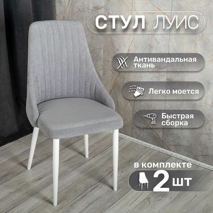 Купить Стулья для кухни со спинкой 2 шт, мягкие со спинкой, металлокаркас, «Луис», У Стулыча, серый, белый