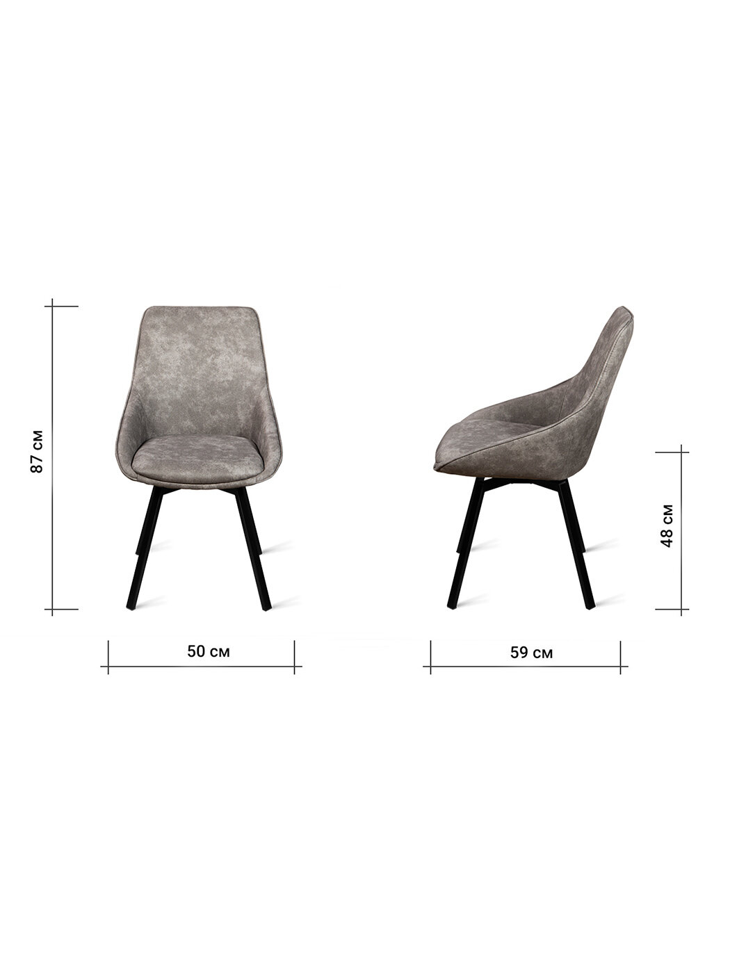 Стул B813-M COW SMOKE BK с поворотным механизмом для кухни без подлокотников, черные ножки, экокожа серый, 50х59х87 см интересное: