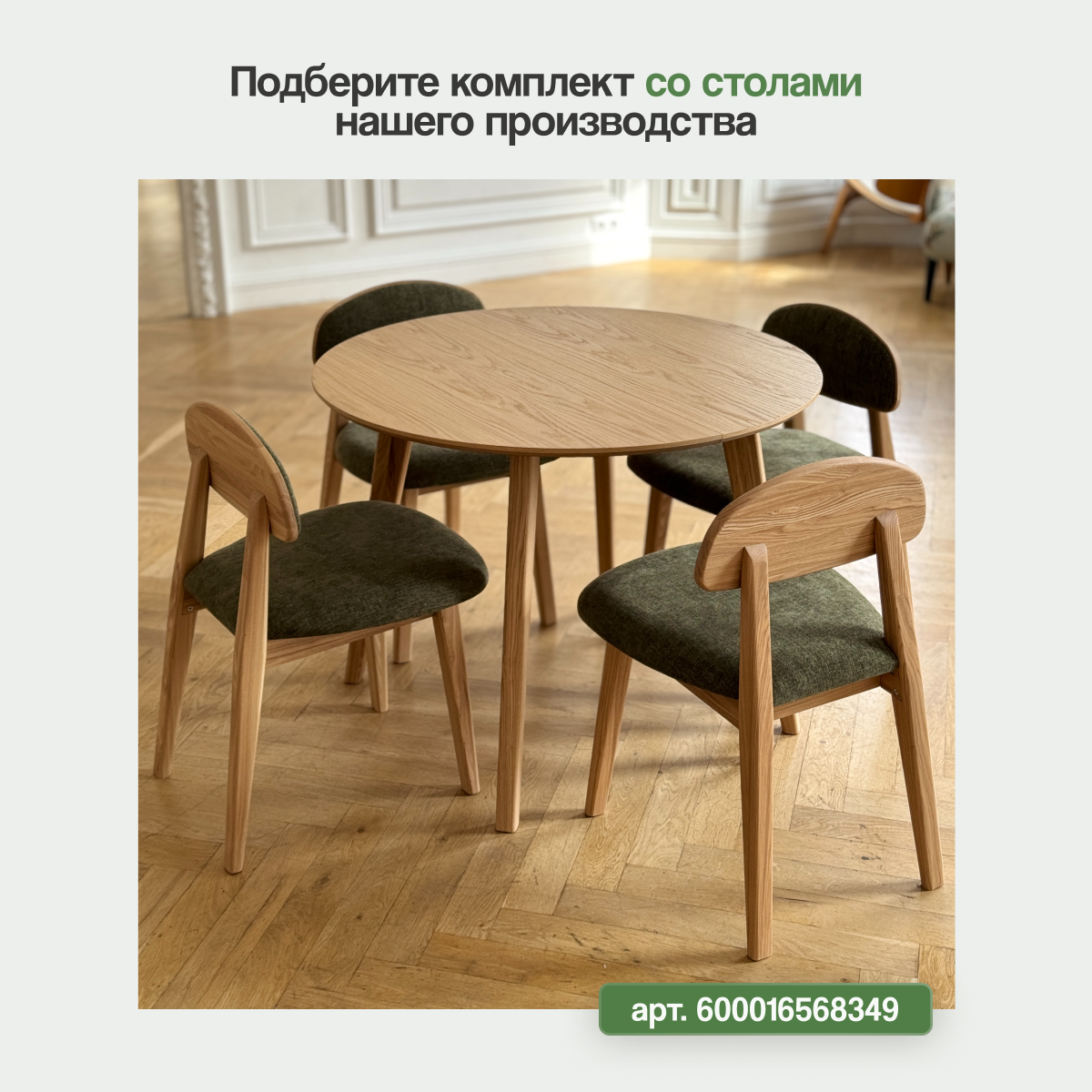 Стул кухонный Loft-Form Base из массива дуба, зёленый шенилл натур, 1 штука интересное: