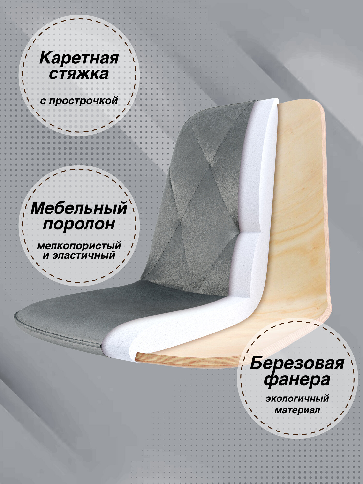 СохранитьКомплект (4 шт) мягких стульев для кухни, кабинета DC-2103 велюр, серый на хромированном каркасе интересное: