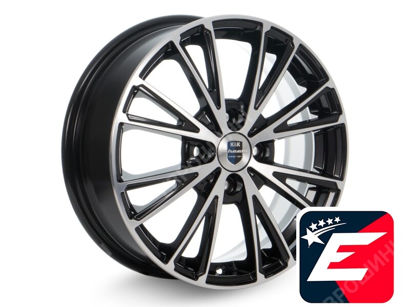 Литые колесные диски КиК (K&K) Меандр 6x16 4x100 ET45 D67.1 Чёрный глянцевый с полированной лицевой частью (74604SK)