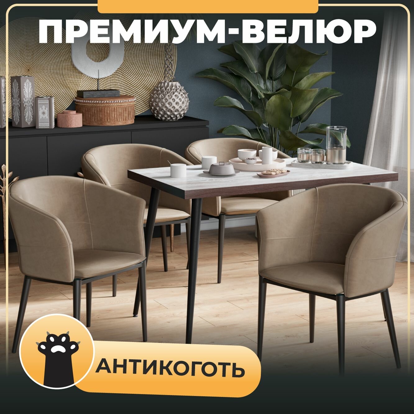 Стул-кресло Дон комплект 2 штуки, премиум велюр антикоготь, ножки металл интересное: