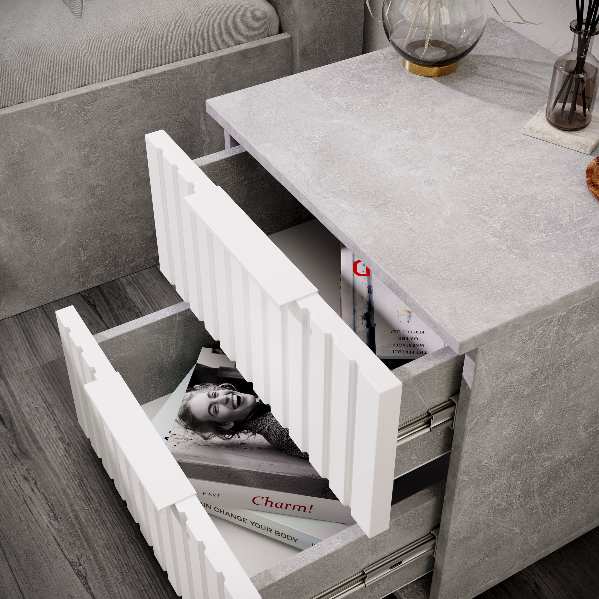 Тумба прикроватная Мебель Трия Хилтон, ЛДСП/МДФ, 41,4x46x45см, 2 ящика