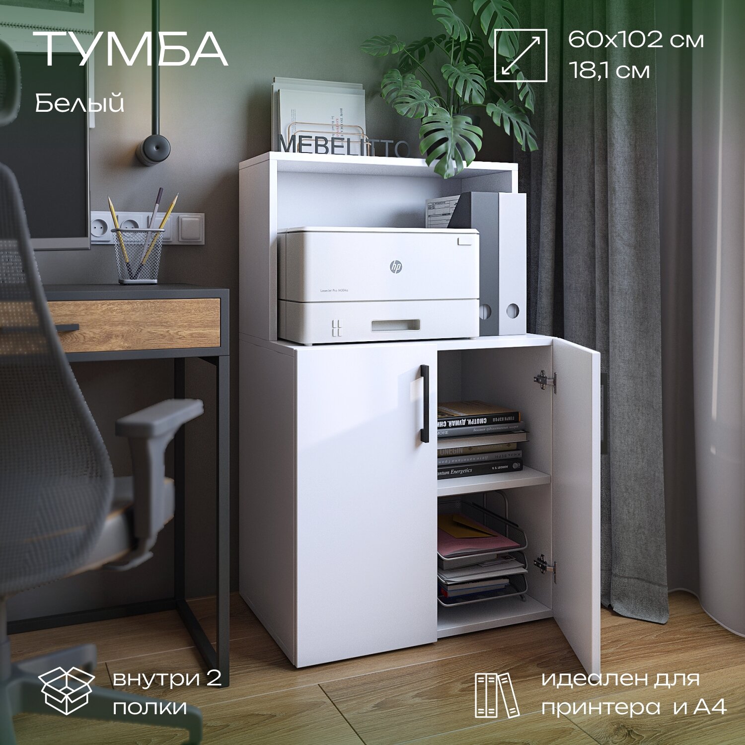 Напольная тумба-комод Mebelitto Токио, Белая, 57 см x 40 см x 94,5 см интересное: