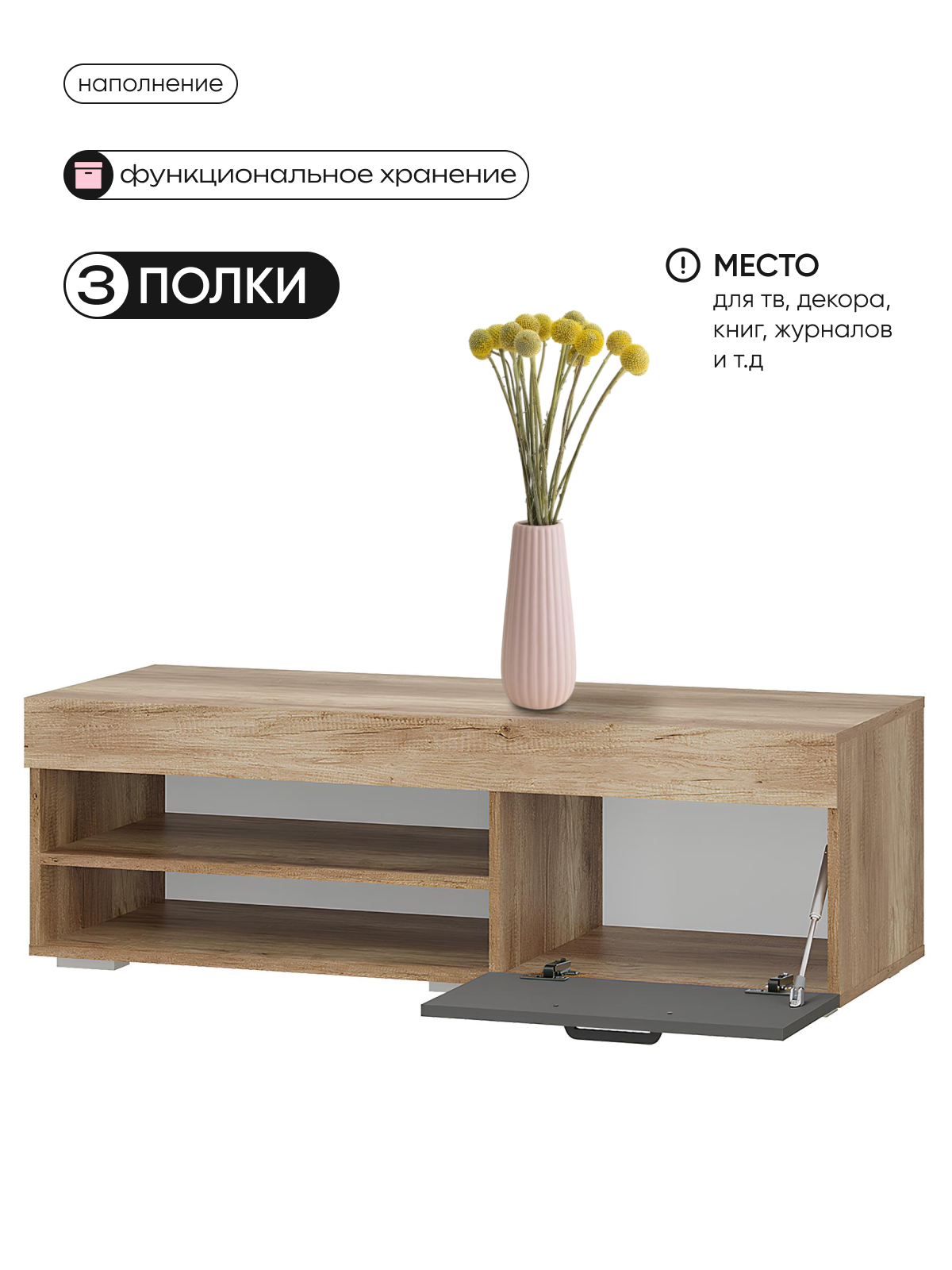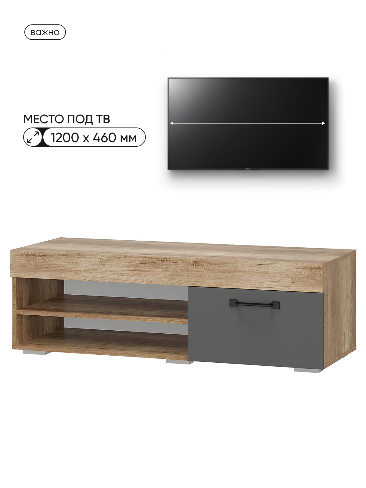Тумба под ТВ БТС МЕБЕЛЬ "Прима", дуб каньон, графит, 120 x 46 x 120см интересное: