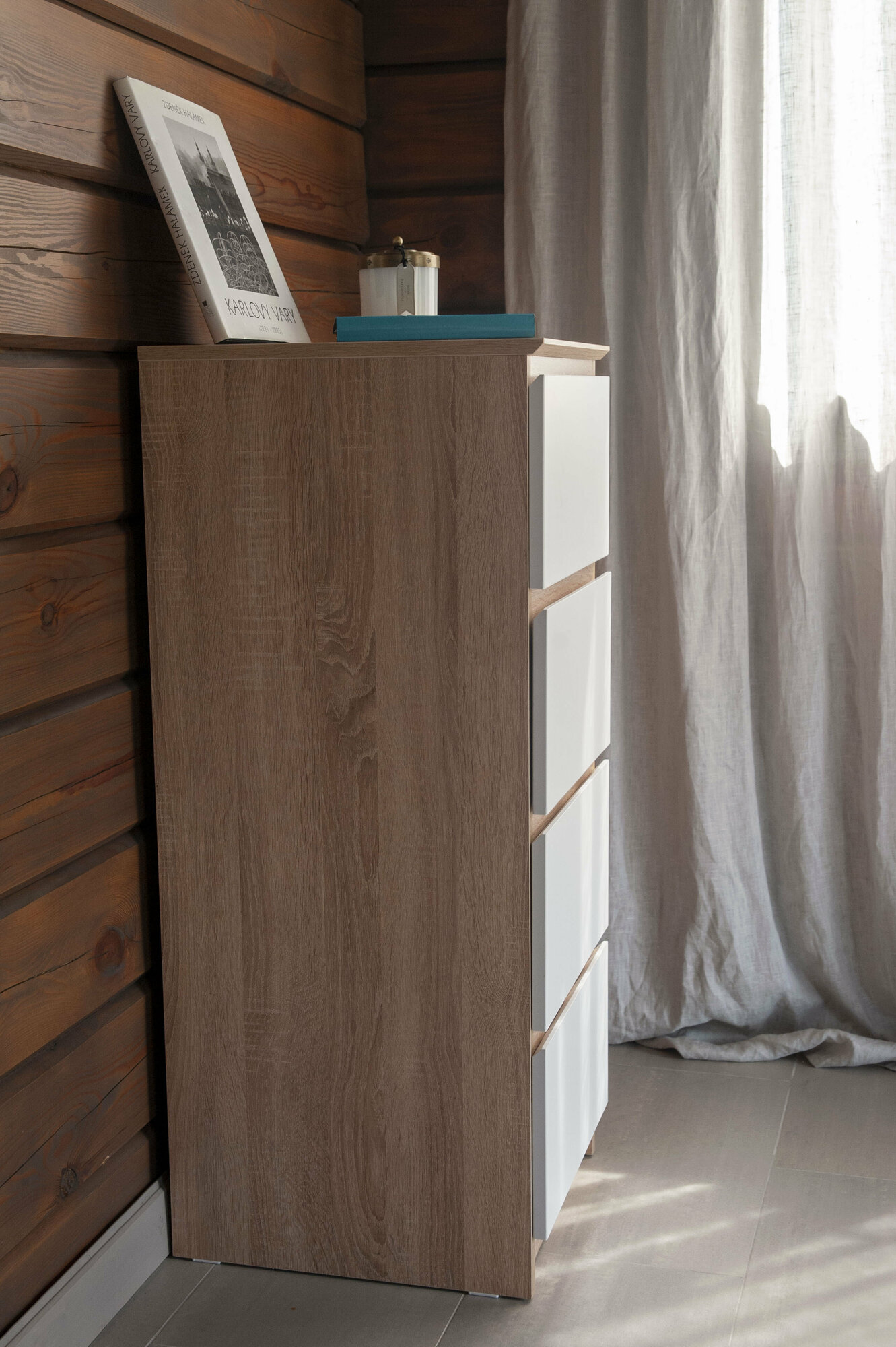 Купить Комод компактный высокий узкий Hesby Turret с 4 выдвижными ящиками, 40x45x104см, белый/дуб сонома
