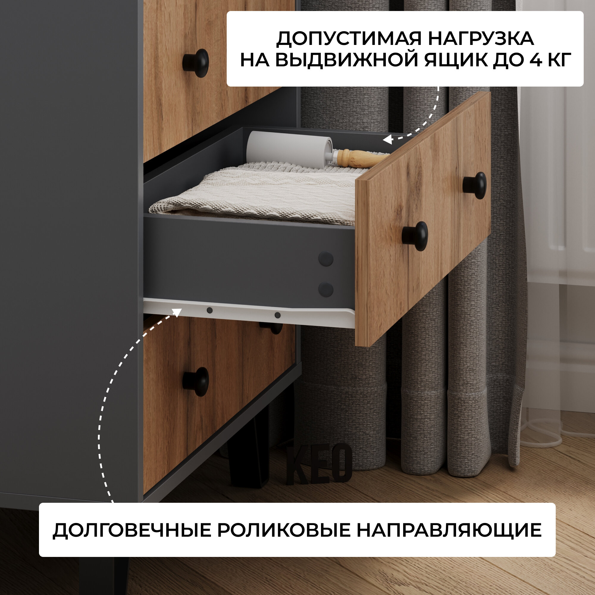Комод для одежды 87х35х60см вещей в гостиную спальню детскую графит вотан серый антрацит с ящиками на ножках Кео КМД-247 интересное: