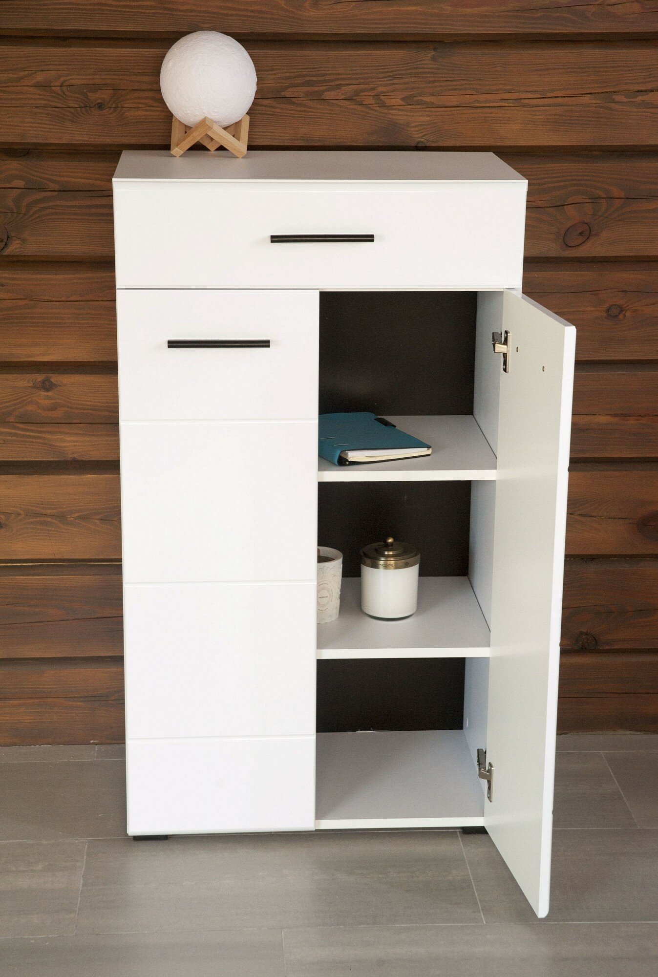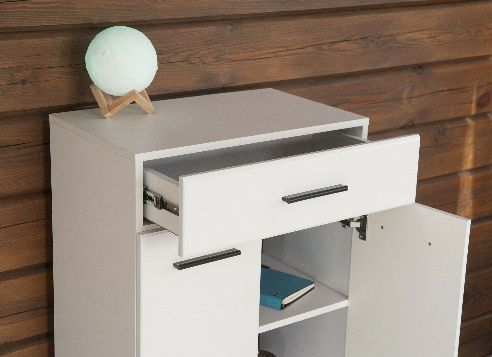 Купить Тумба с выдвижным ящиком и полками HESBY Сидней для прихожей. Размер: 105х60х38 см. Цвет: белый глянец