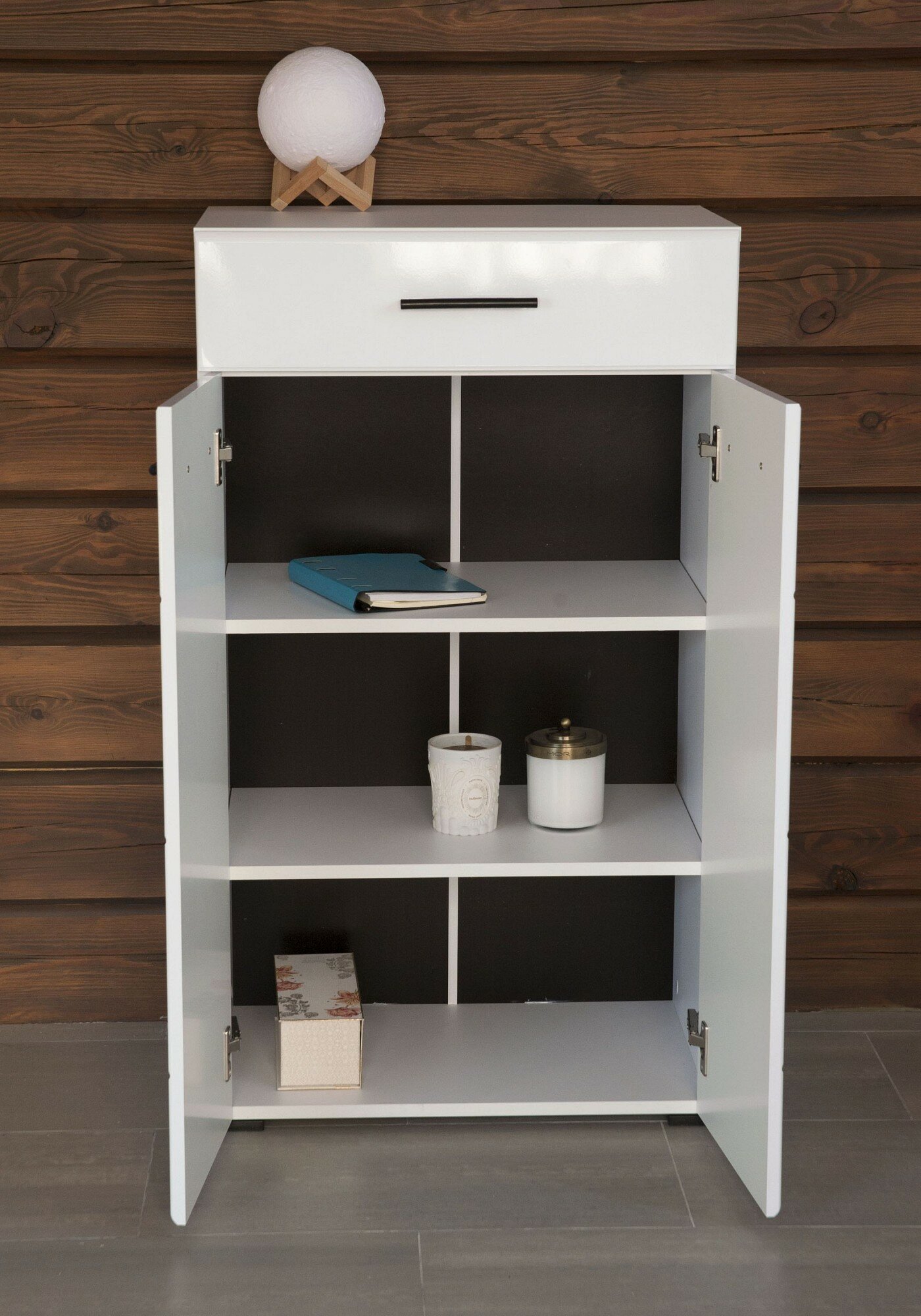 Тумба с выдвижным ящиком и полками HESBY Сидней для прихожей. Размер: 105х60х38 см. Цвет: белый глянец интересное: