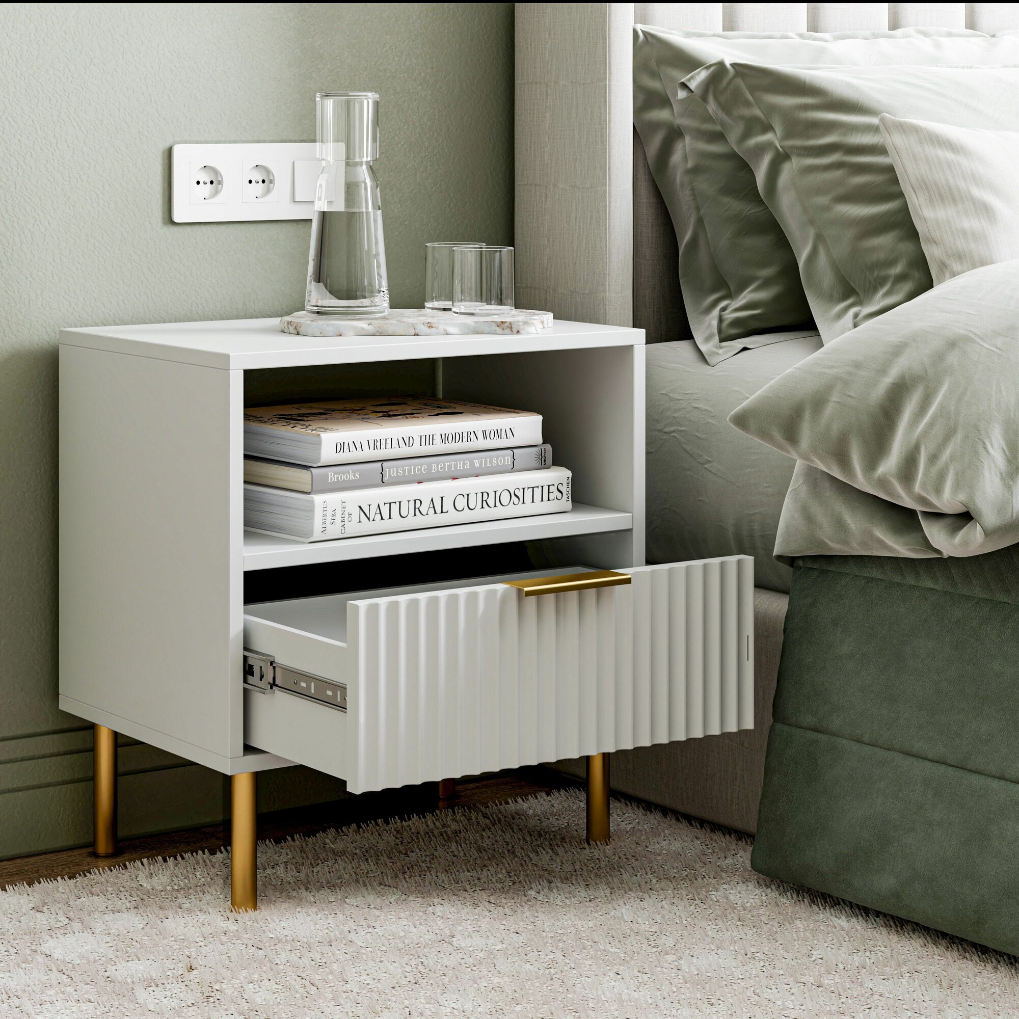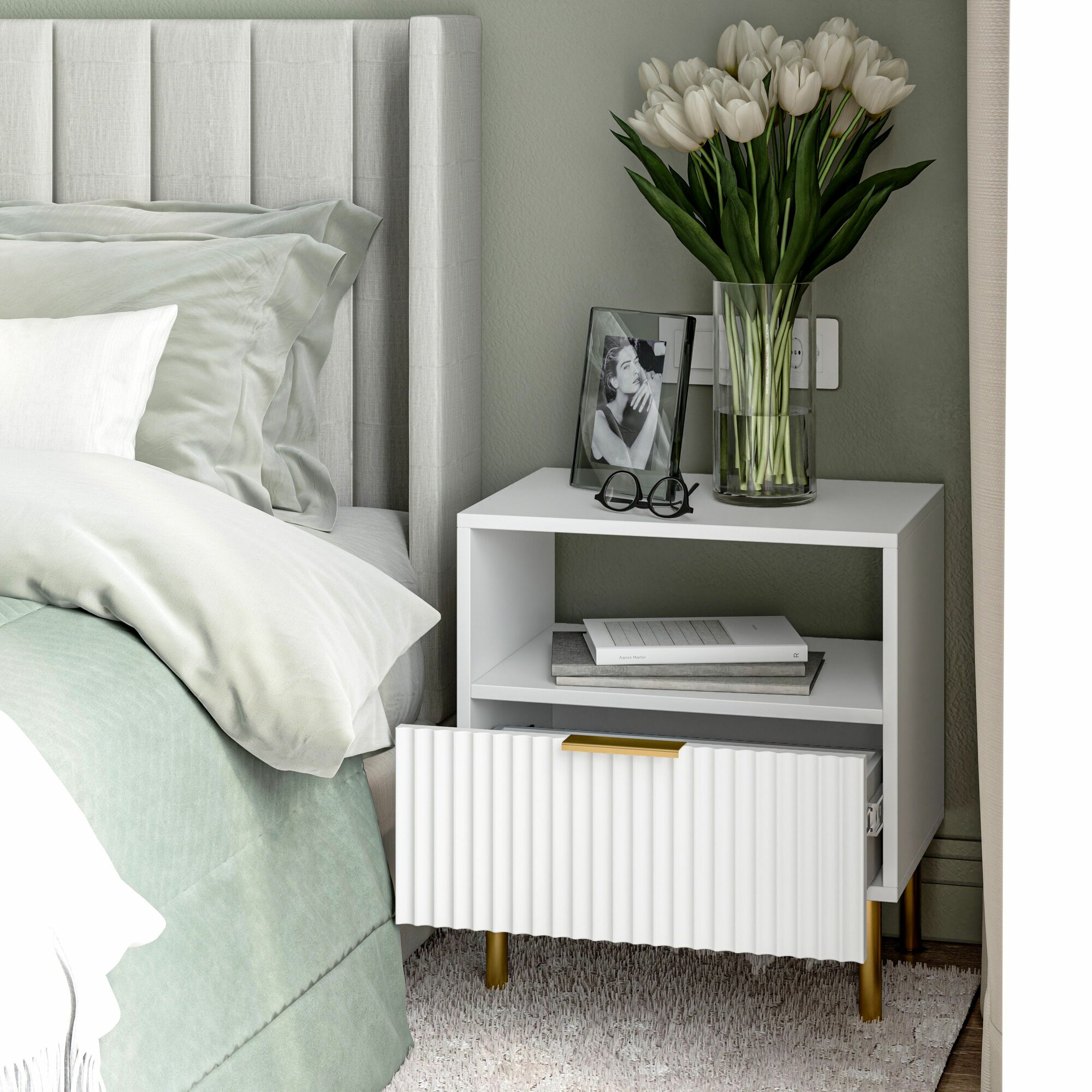 Тумба прикроватная BORDO "Raenyra", белая, с полкой, шариковые направляющие интересное: