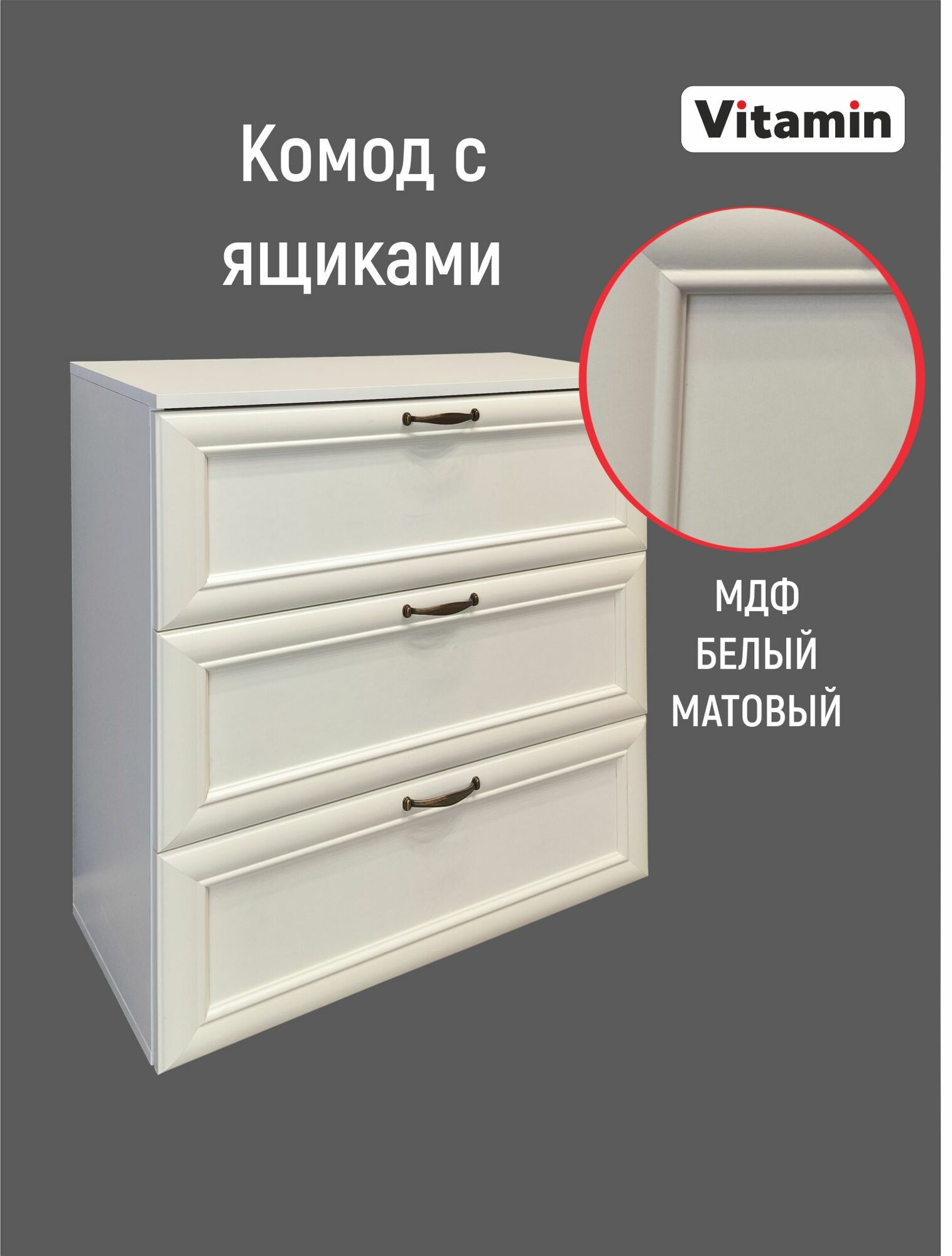 Комод VITAMIN, 3 выдвижных ящика, классический стиль, белый, 70 х 30 x 80см интересное: