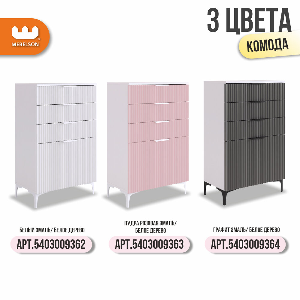 Комод с ящиками "Зефир", 60*35*96 см, цвет Белое дерево/серый (эмаль), Mebelson интересное: