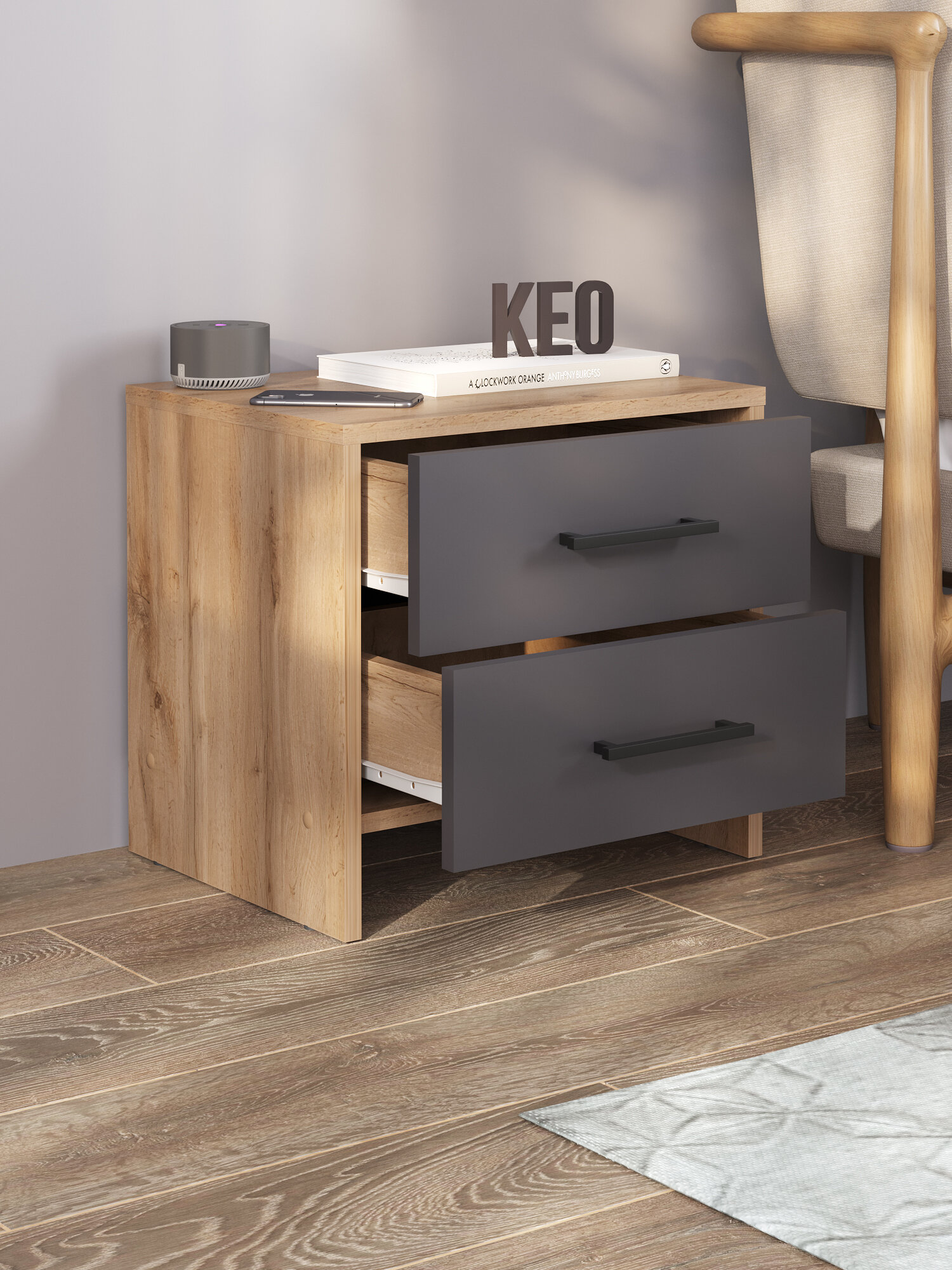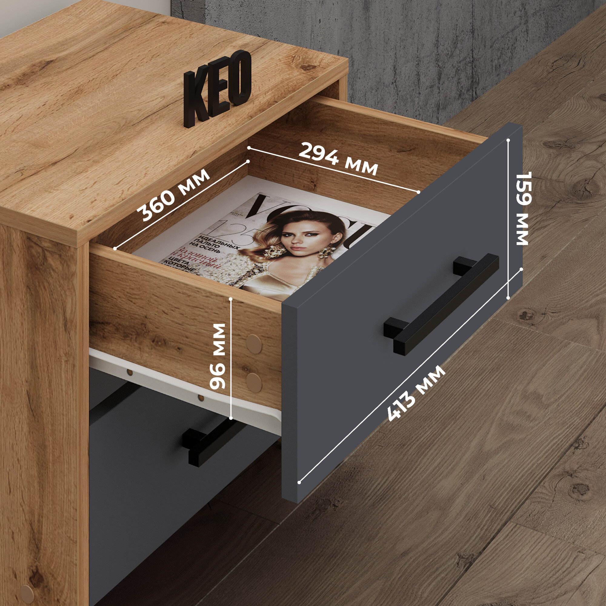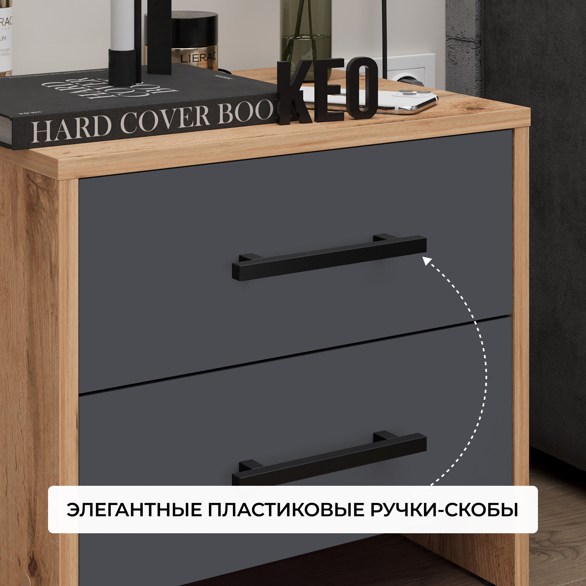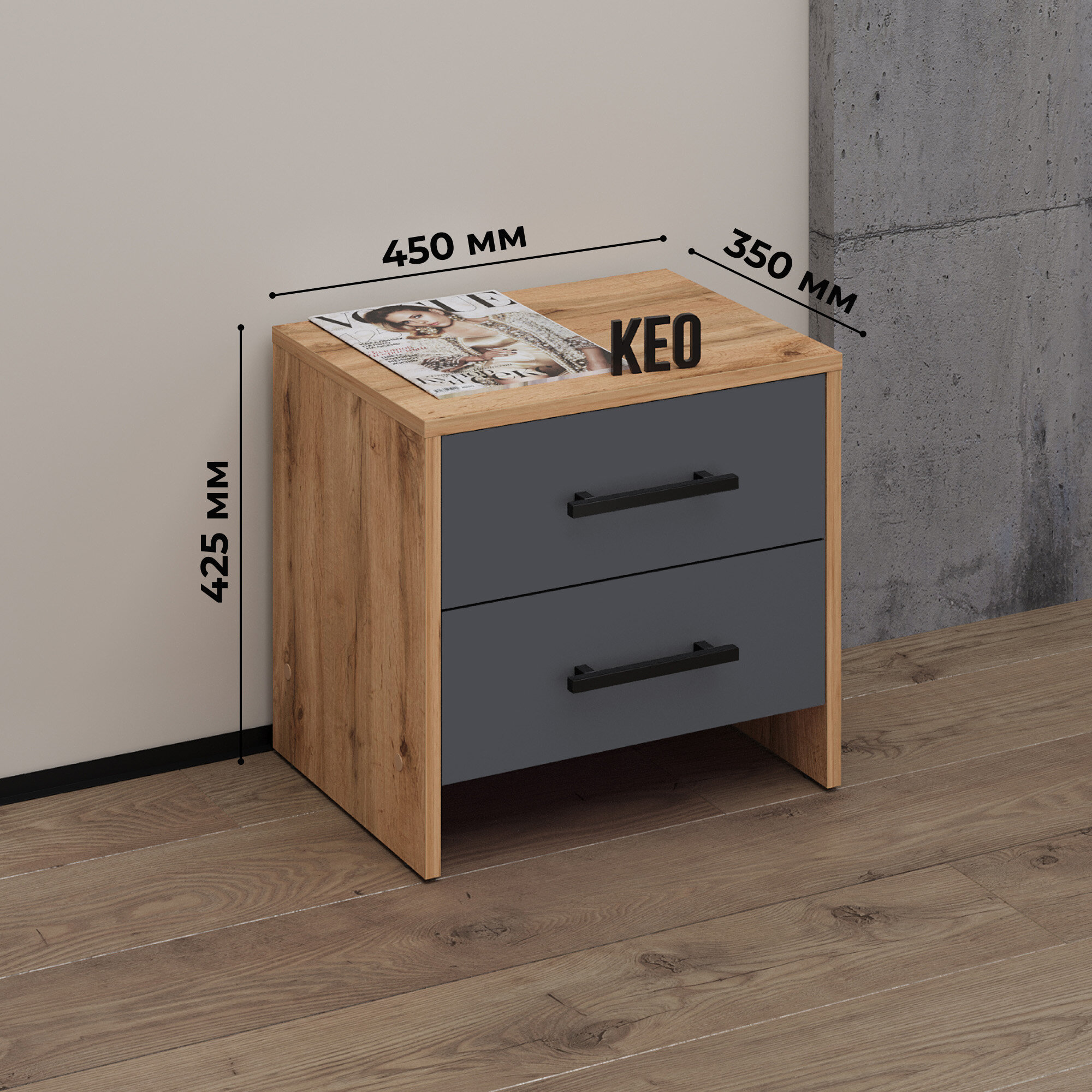 Тумба прикроватная 42х45х25см напольная с ящиками для спальни гостиной прихожей детской Кео ТКР-263 вотан антрацит серый интересное: