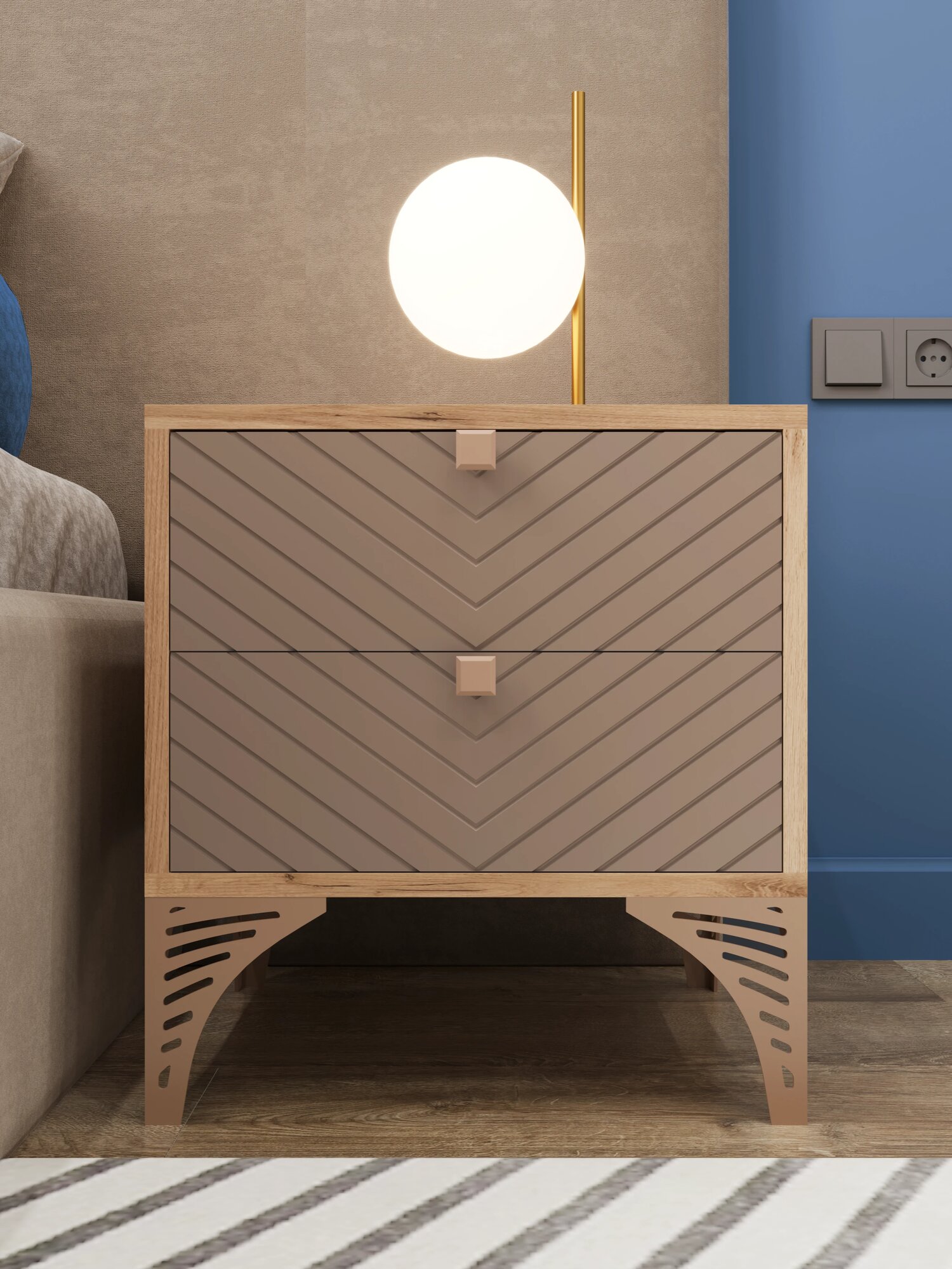 Тумба прикроватная на ножках бежевая СКАЛА-1 дуб крафт золотой/латте, 43.6х40х47.4