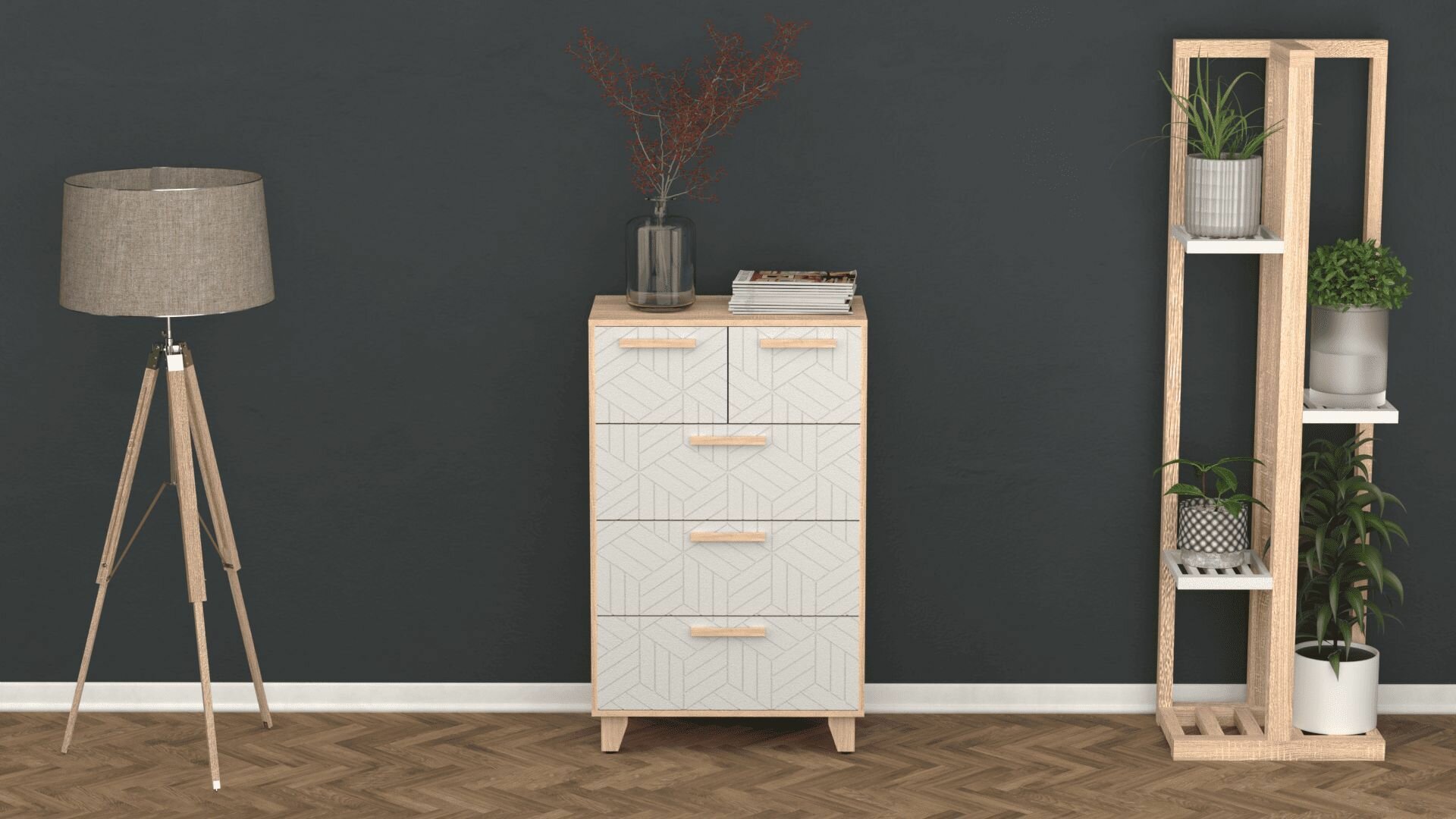Комод Стокгольм ЛДСП Дуб Самдал / МДФ Белый матовый