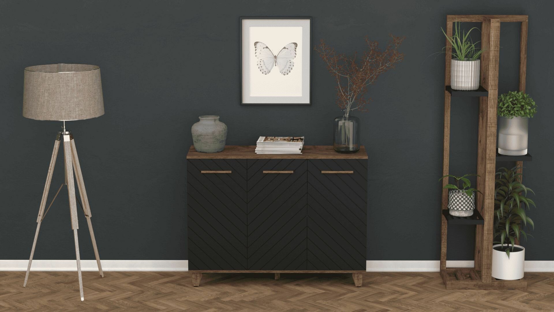 Комод Стокгольм ЛДСП Белый / МДФ Черный Матовый