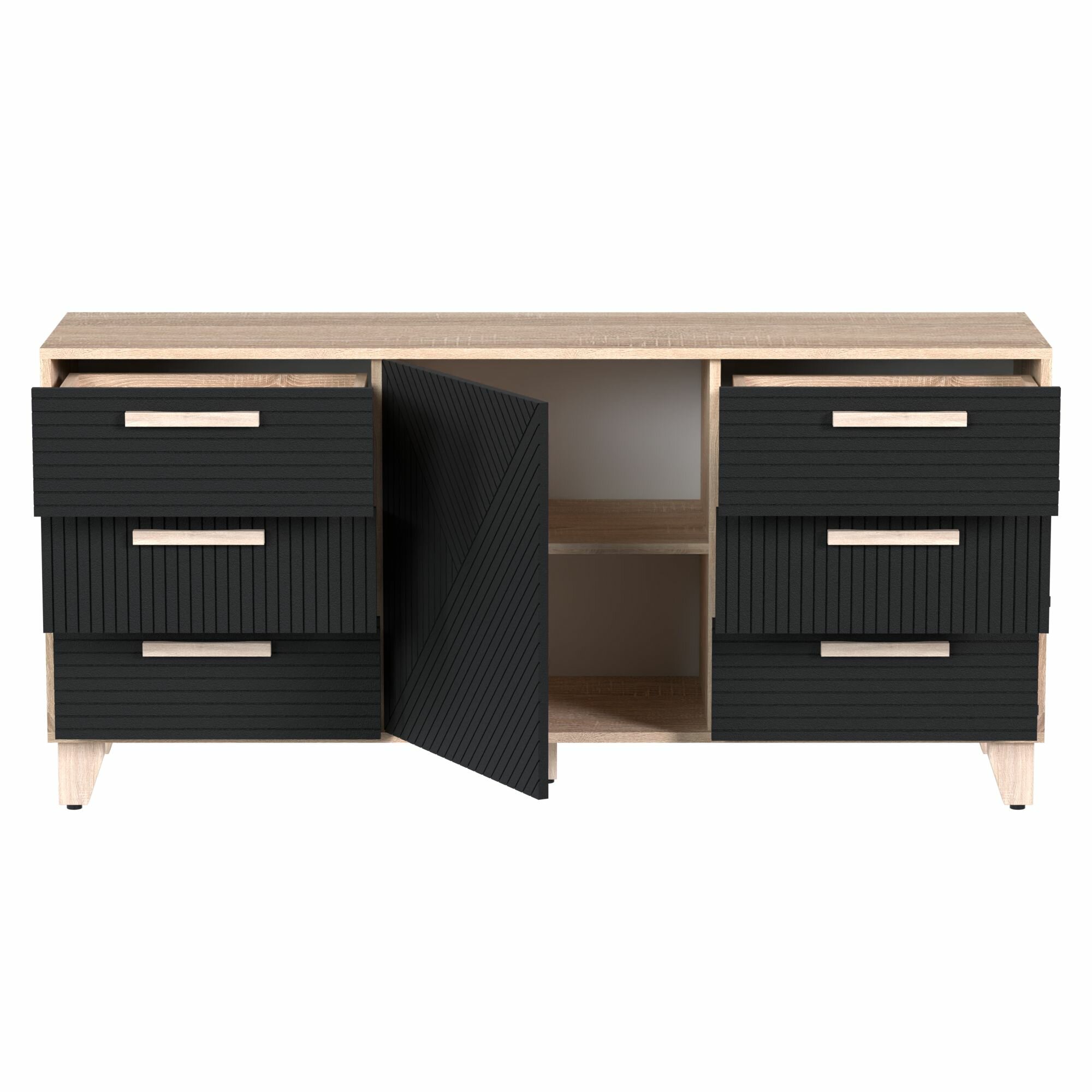 Комод Копенгаген ЛДСП Дуб Самдал / МДФ Черный матовый (двенадцать стульев Фабрика мебели)