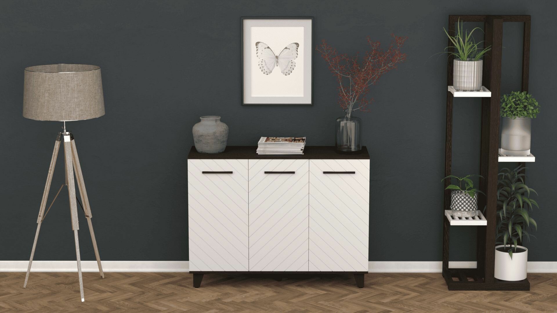 Комод Стокгольм ЛДСП Белый / МДФ Черный Матовый