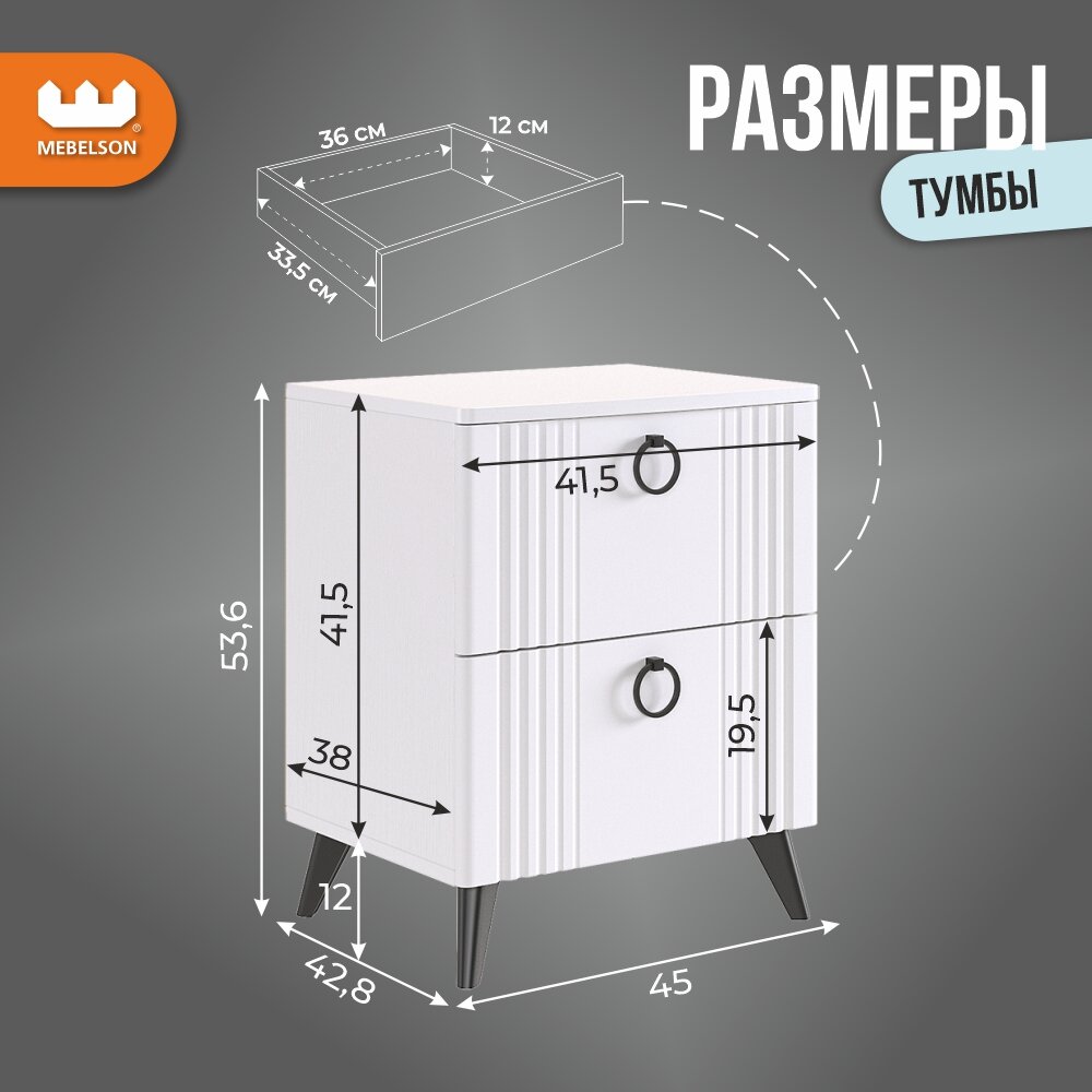 Тумба прикроватная Мебельсон Ева белое дерево/белый матовый Размеры: Высота 446мм Глубина 428мм Ширина 450мм