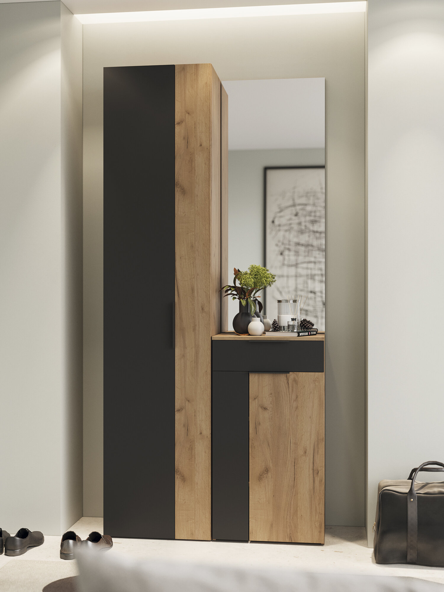 Тумба для обуви ТриЯ, "Асти", ЛДСП, дуб крафт золотой/серый, 51x36x95 см интересное: