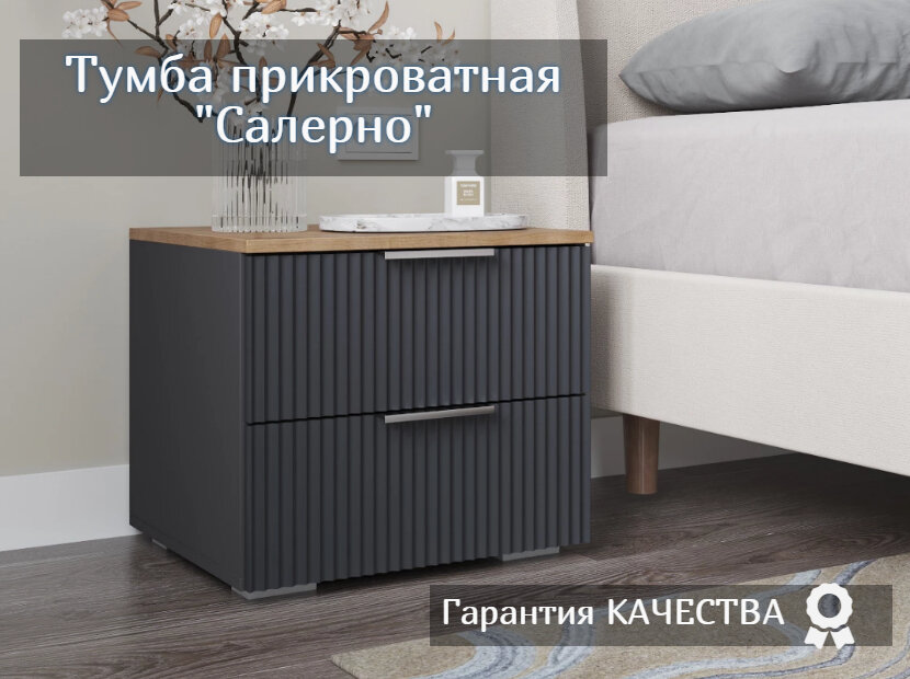Тумба прикроватная Салерно Антрацит / Дуб Вотан 2 ящика 50х44х42 см (Twist-mebel) интересное: