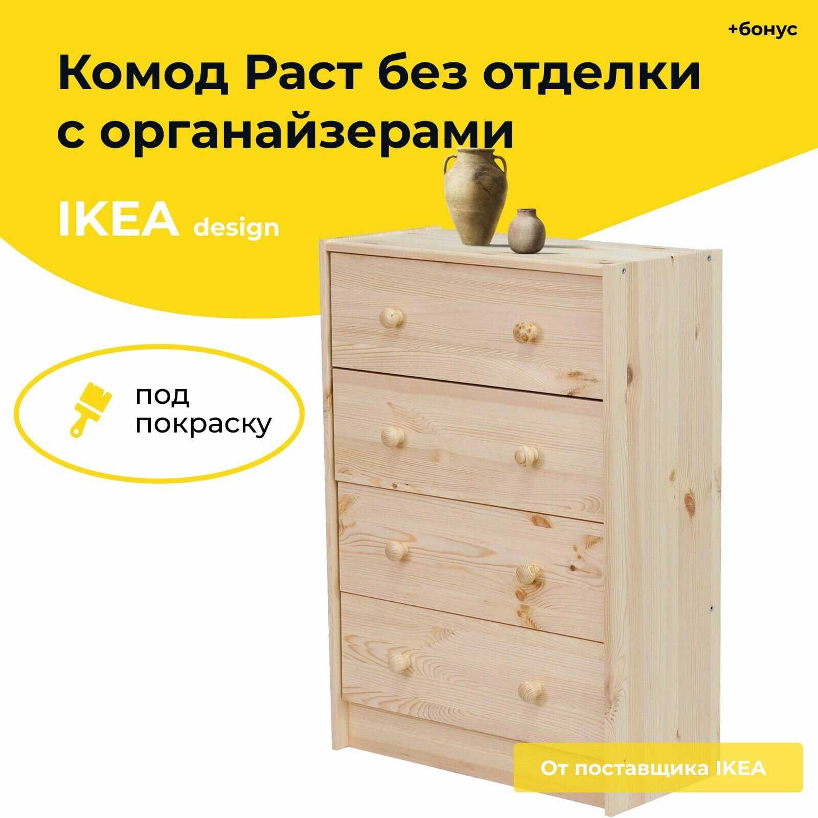 Купить Комод деревянный для вещей Икеа Раст с органайзером (без отделки / натуральный / 4 ящика / сосна)