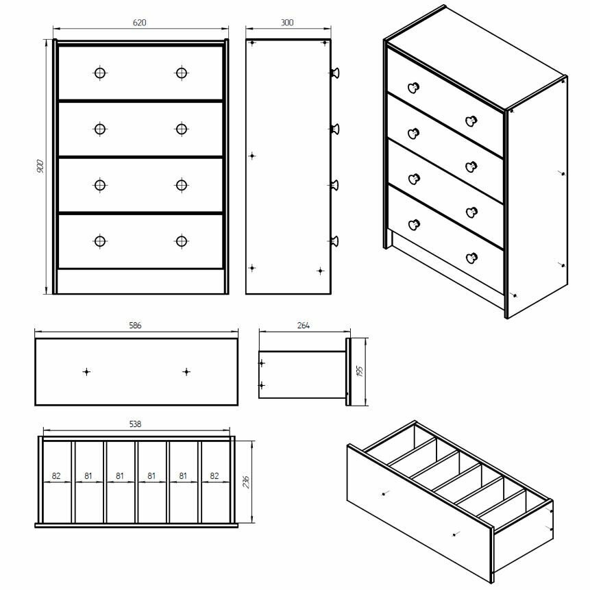Комод Раст 4 ящика с органайзером (белый / сосна)