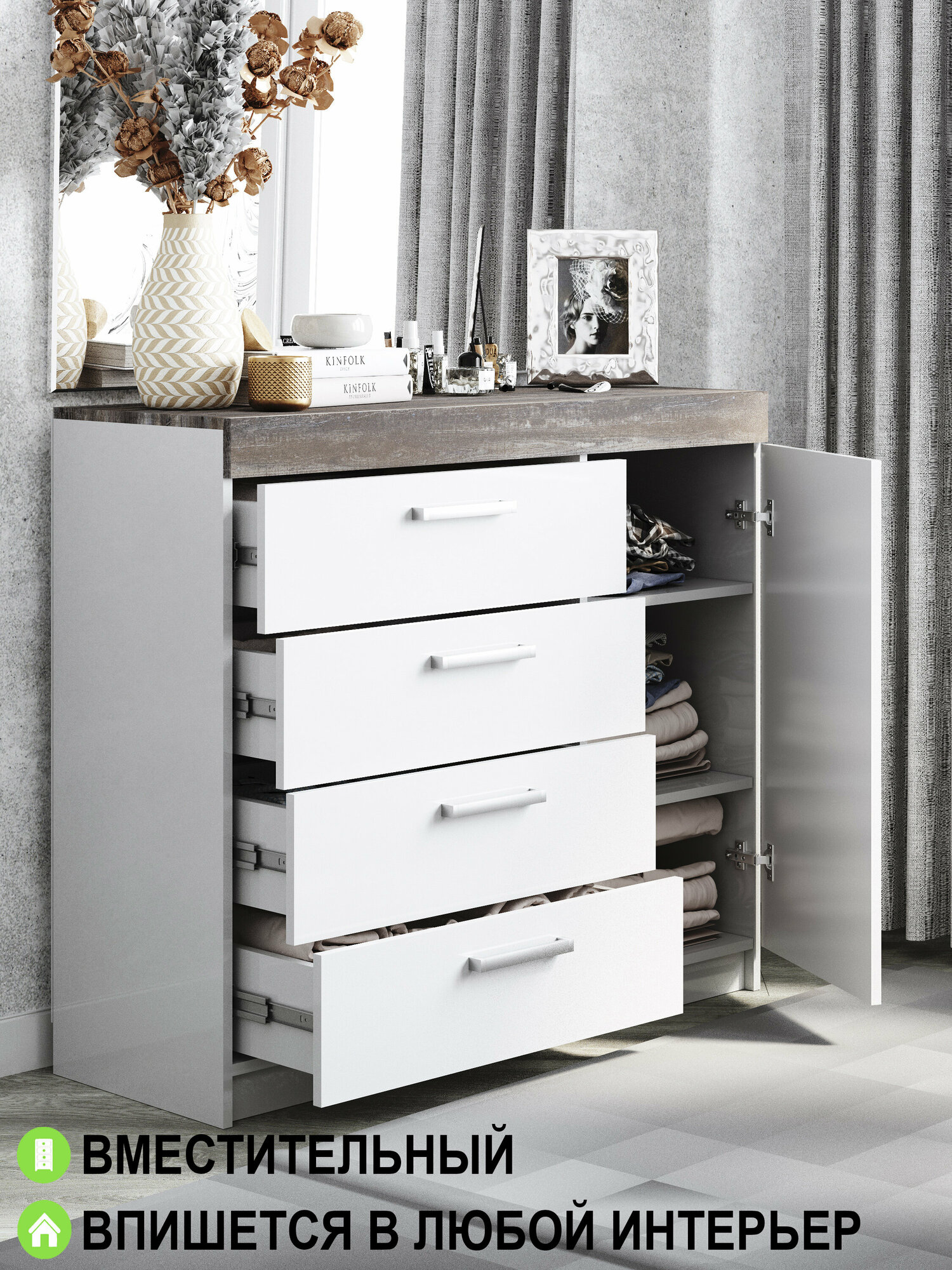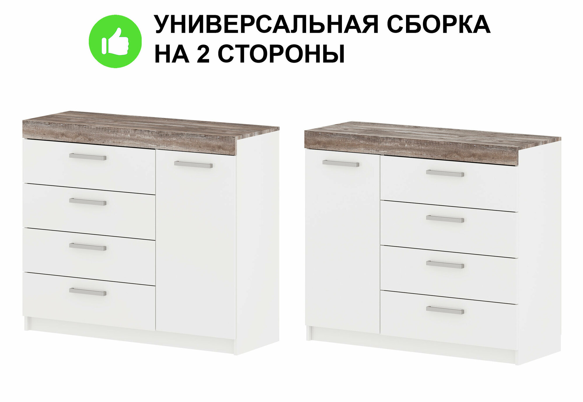 Комод "Модерн" №1-4 ящика (1 дверь), В*Ш*Г (см) 95х110х40, ЛДСП, белый / сосна рокпорт интересное: