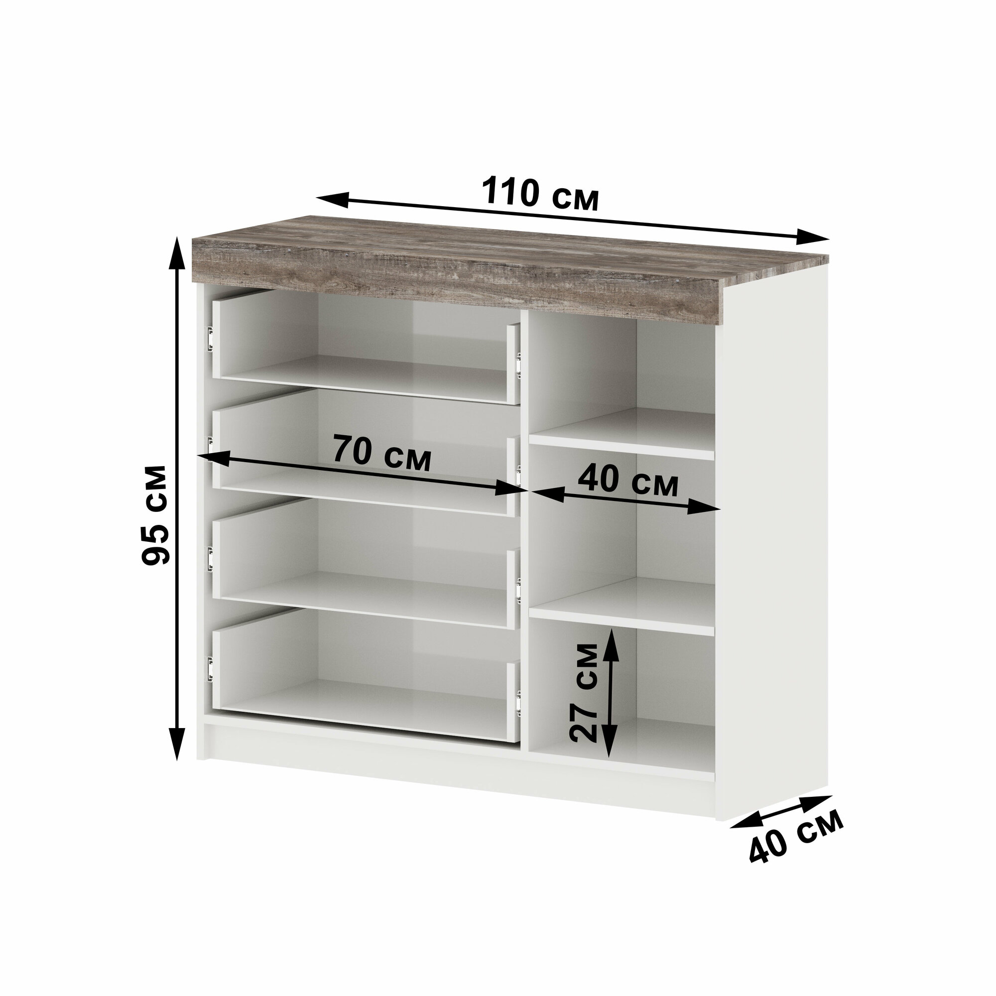 Комод "Модерн" №1-4 ящика (1 дверь), В*Ш*Г (см) 95х110х40, ЛДСП, белый / дуб сонома