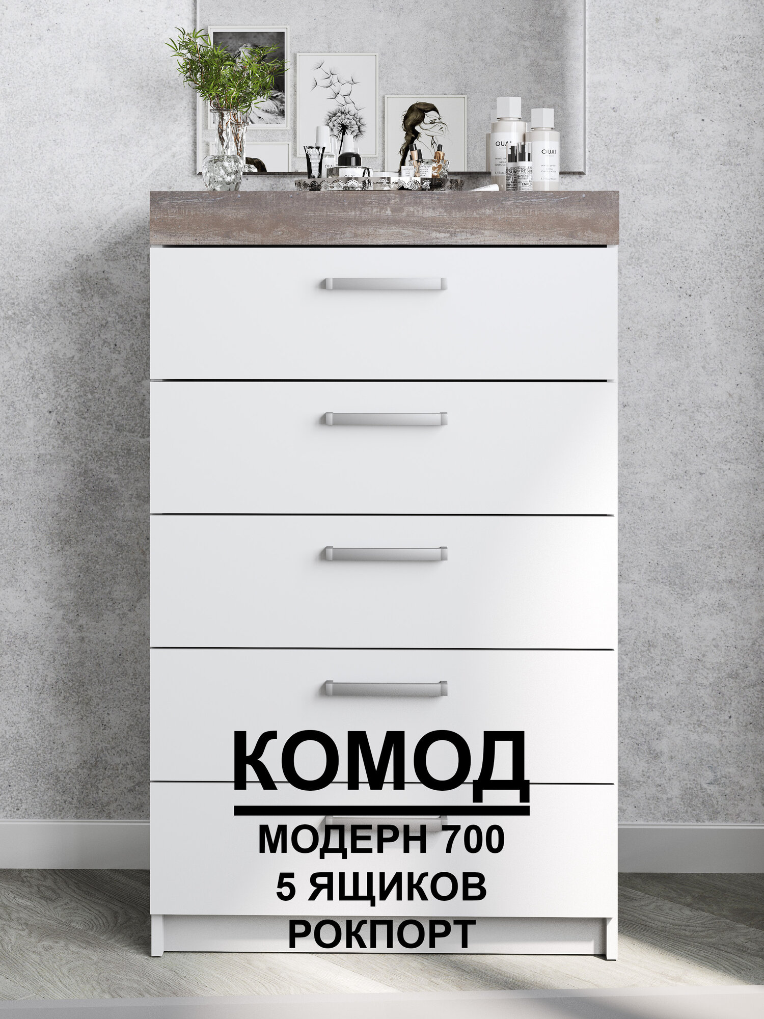 Комод "Модерн" 700-5 ящиков, В*Ш*Г (см) 115х70х40, ЛДСП, белый / сосна рокпорт интересное: