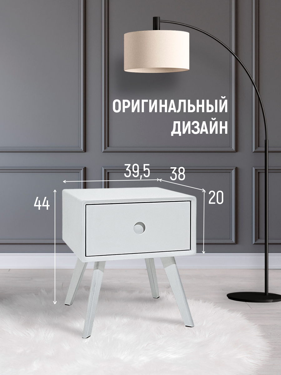 Тумба прикроватная с выдвижным ящиком напольная из фанеры 39*38*44, цвет белый