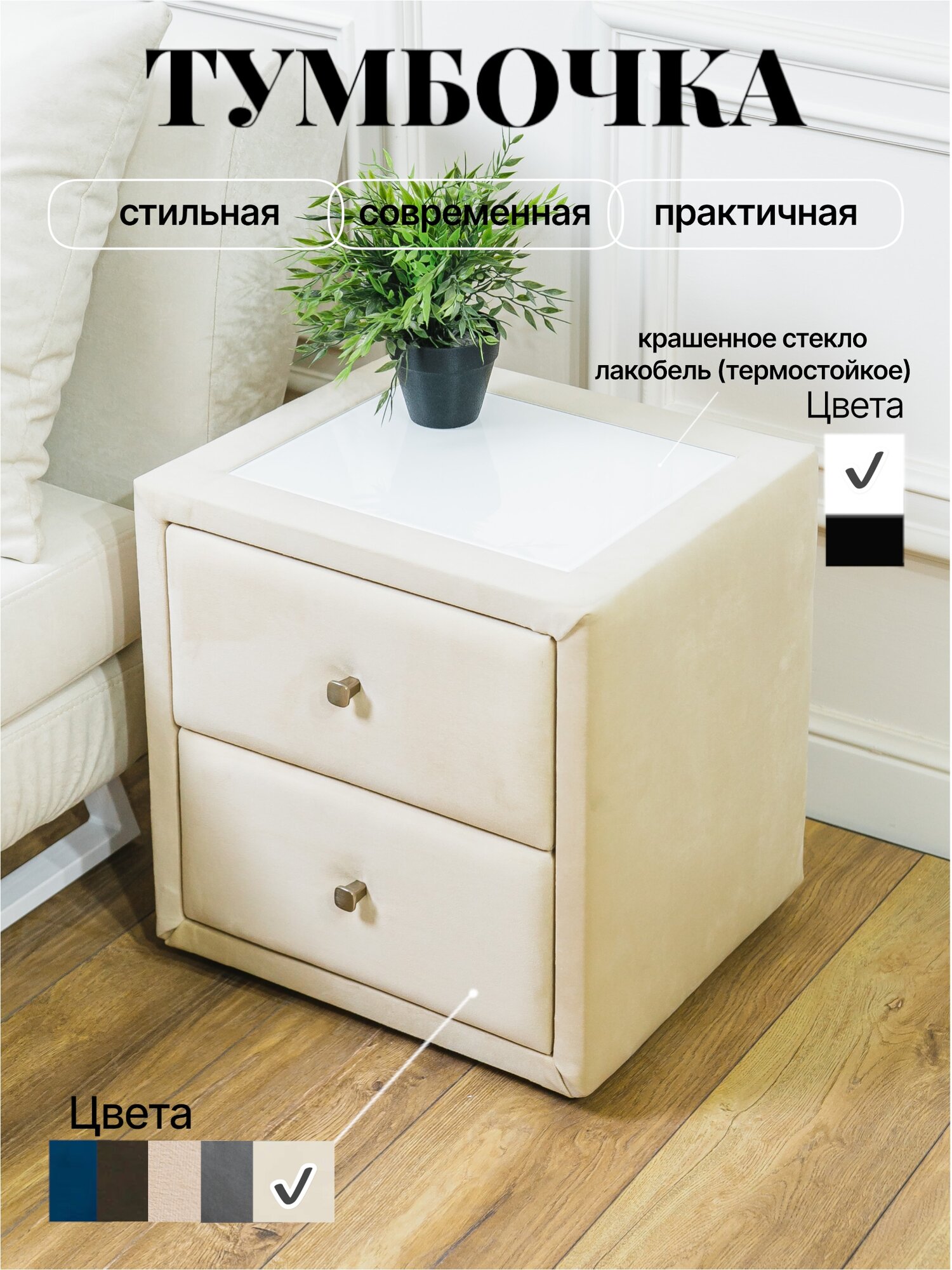 Прикроватная тумба "ДЭРИЯ", с ящиками и стеклянной поверхностью бежево-белая, 46х37.5х48 см