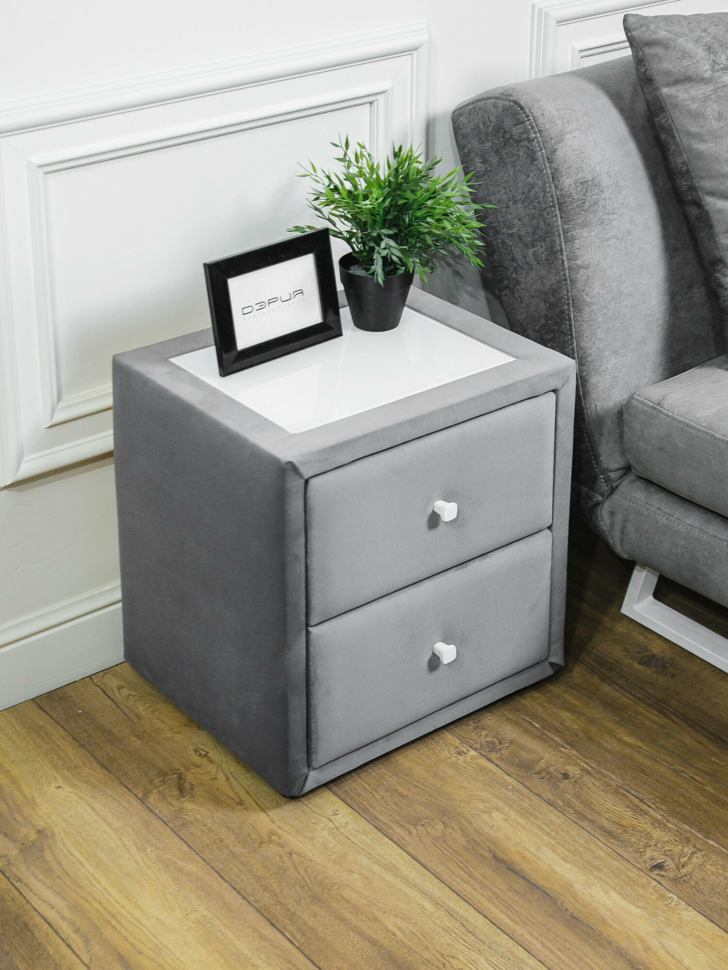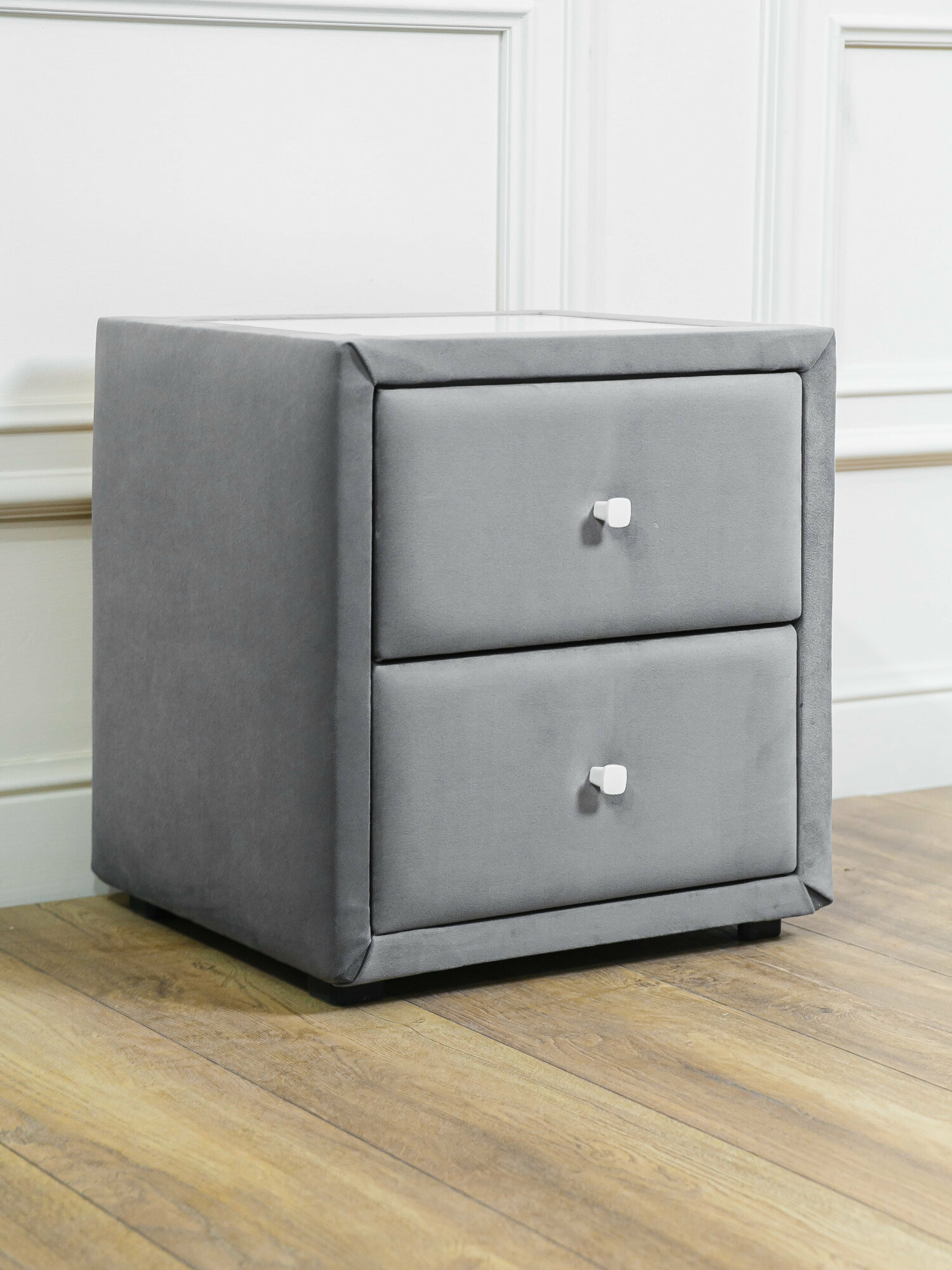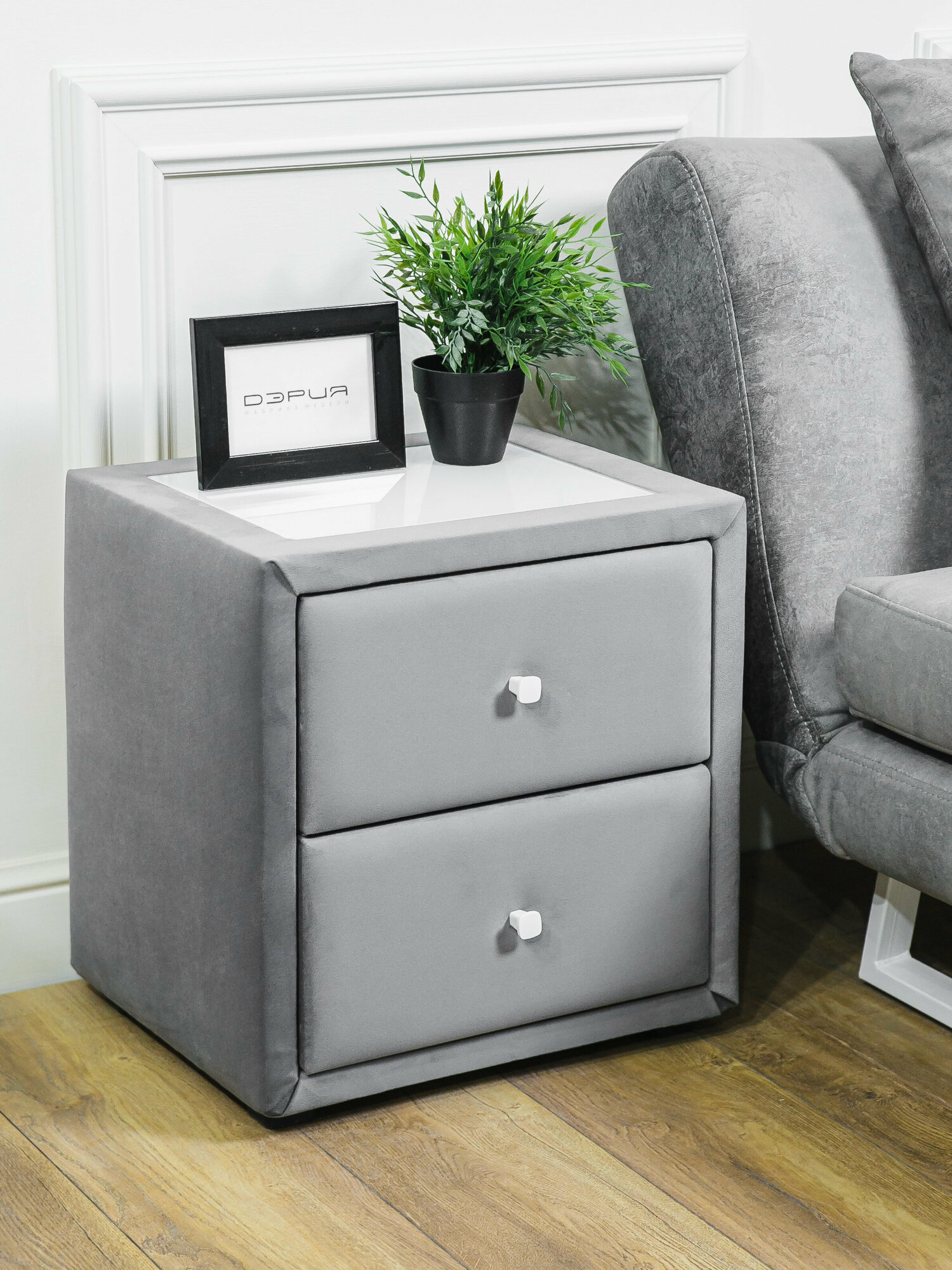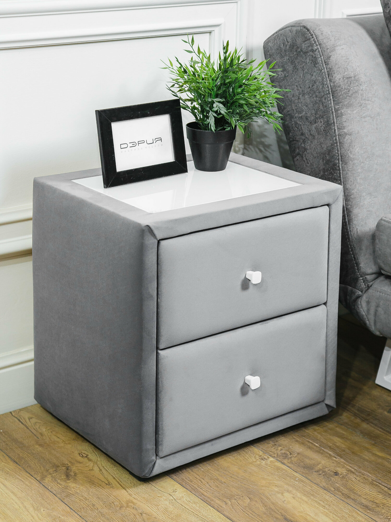 Тумба прикроватная ДЭРИЯ, мягкая, с ящиками, серая, 46х48х37.5 см