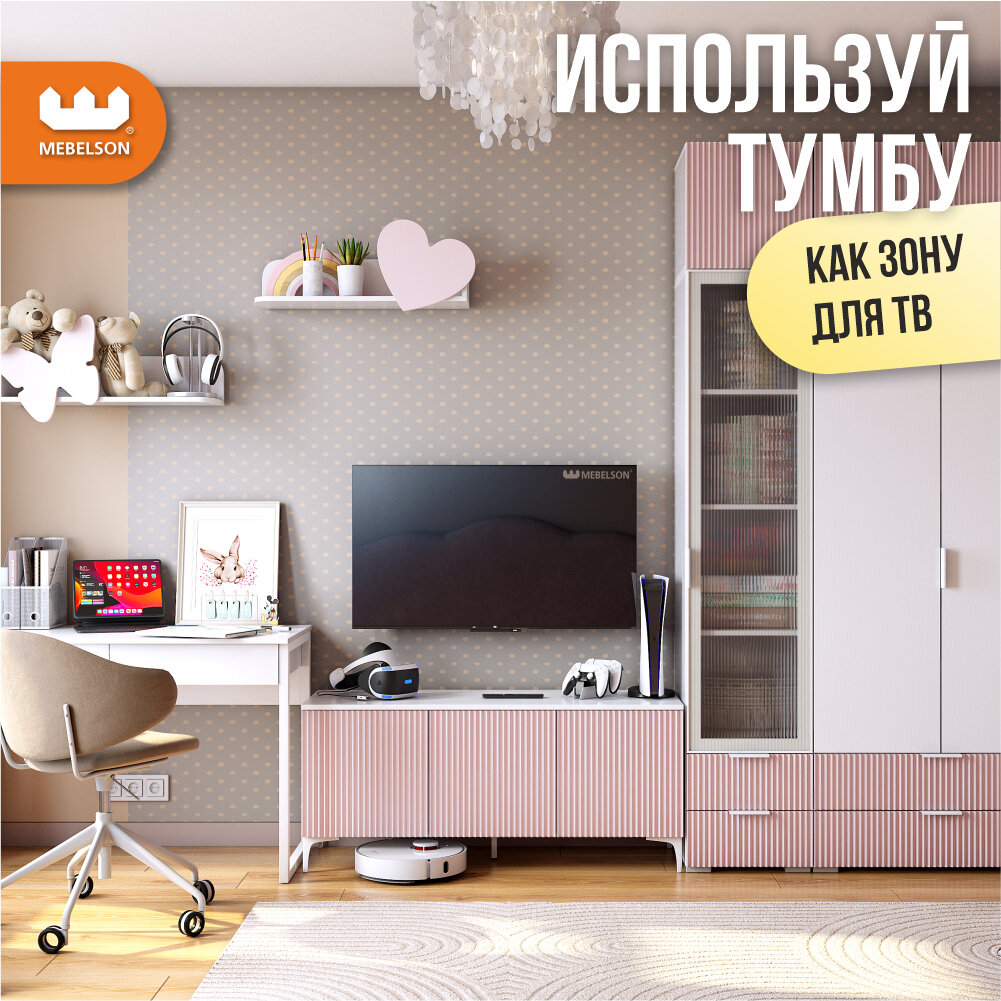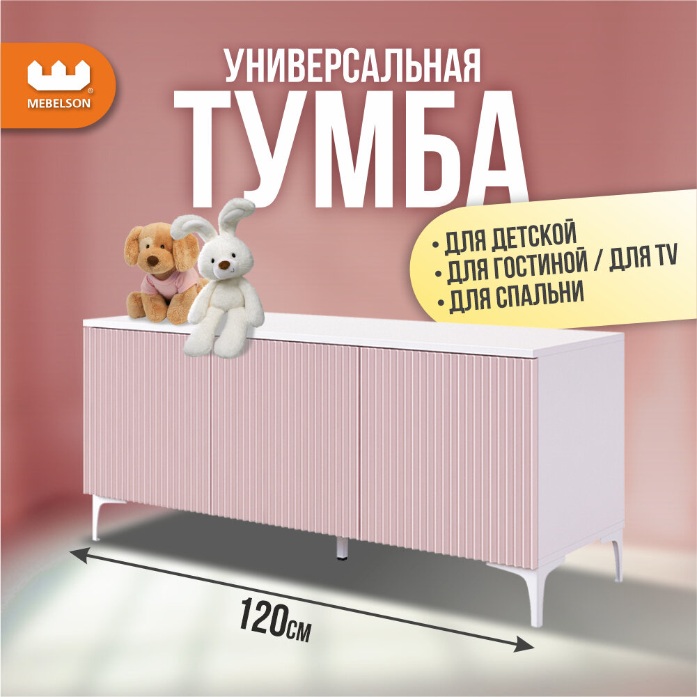Тумба "Зефир 115.01", цвет Белое дерево/пудра розовая (эмаль), 120*42,4*53,6 см, MEBELSON интересное: