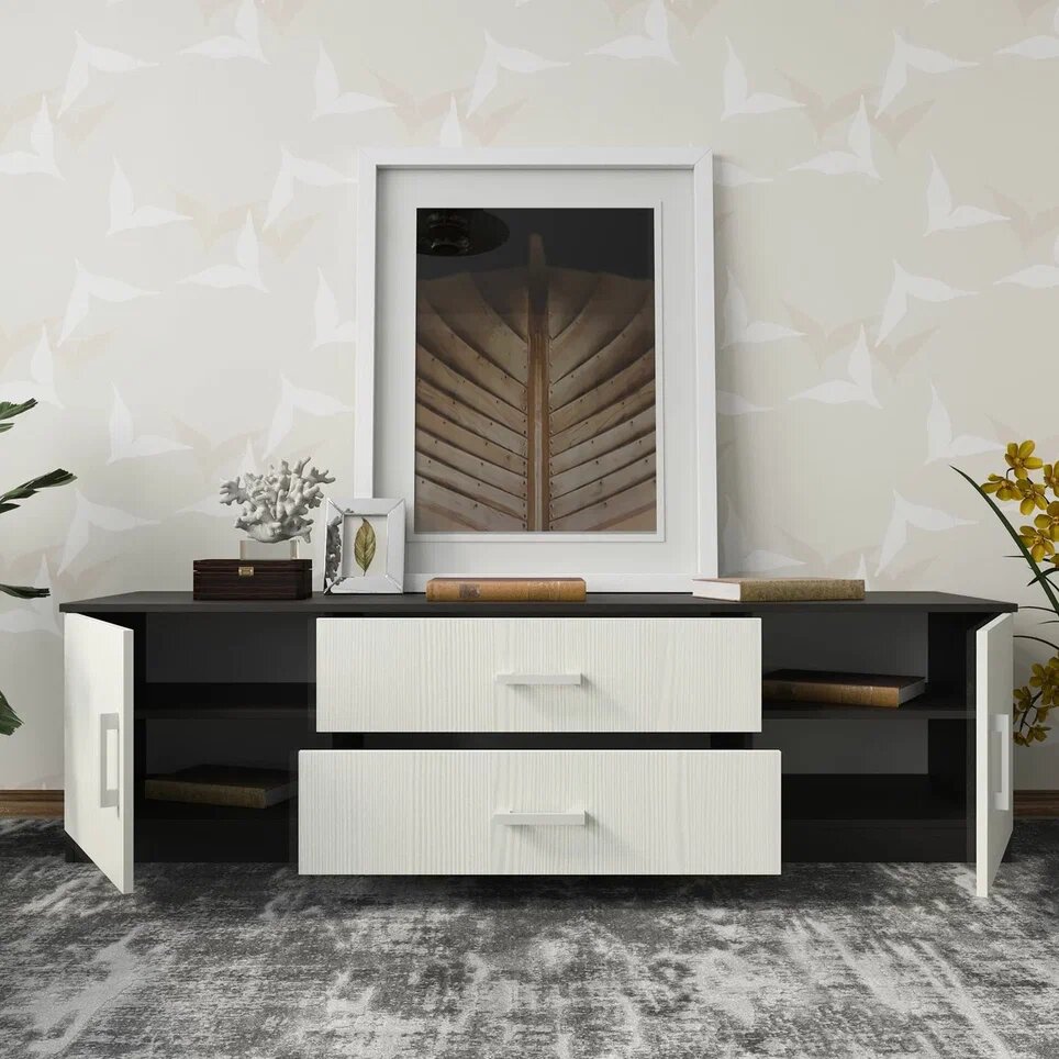 Тумба ТВ Дуэт цвет: ясень шимо темный/ясень шимо светлый размер: 1400х445х1825 мм