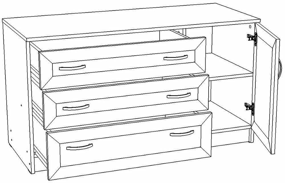 Купить Комод Рио-1,3 с 3 ящиками, дверцей и 7 ручками, ШхГхВ: 120х50х64 см