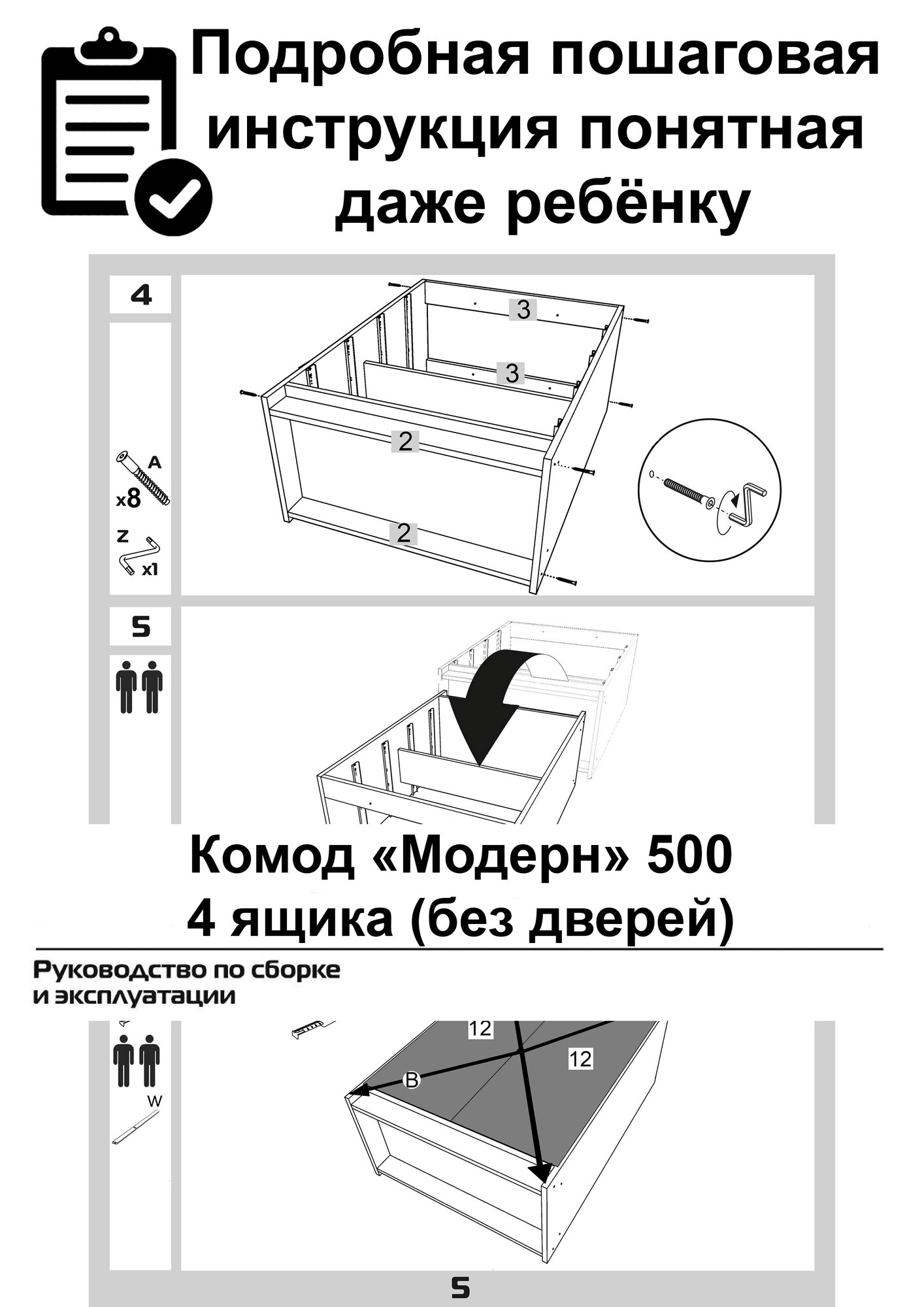 Комод "Модерн" 500-4 ящика, В*Ш*Г (см) 95х50х40, ЛДСП, белый / сосна рокпорт интересное: