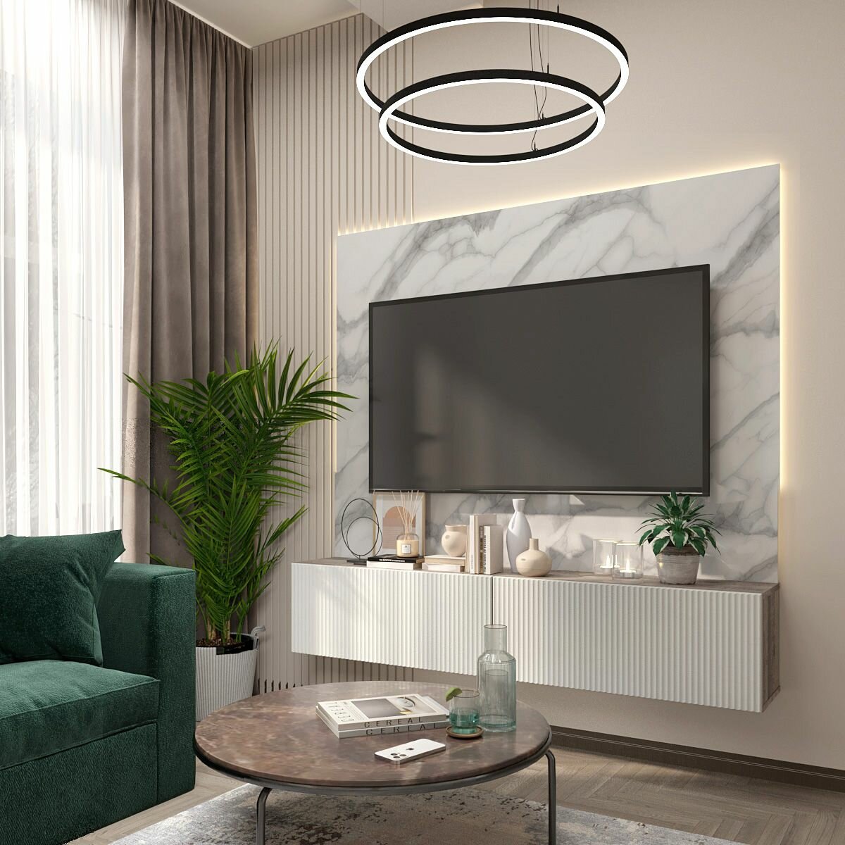 Тумба под ТВ навесная 180х27х30 см МДФ Белый "Гауди"