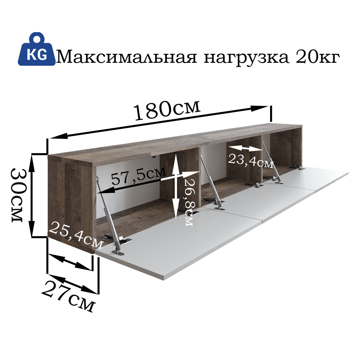 Купить Тумба под ТВ навесная 180х27х30 см МДФ Лофт капучино/Дуб Гранж колониальный "Гауди"
