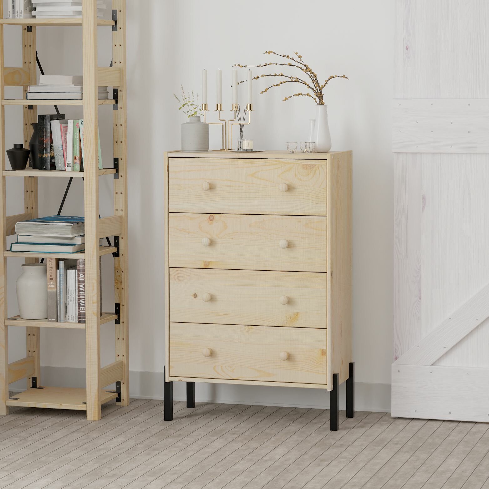 Купить Комод деревянный 4 ящика Раст, с органайзерами для хранения вещей, на металлических ножках, из массива сосны в натуральной отделке