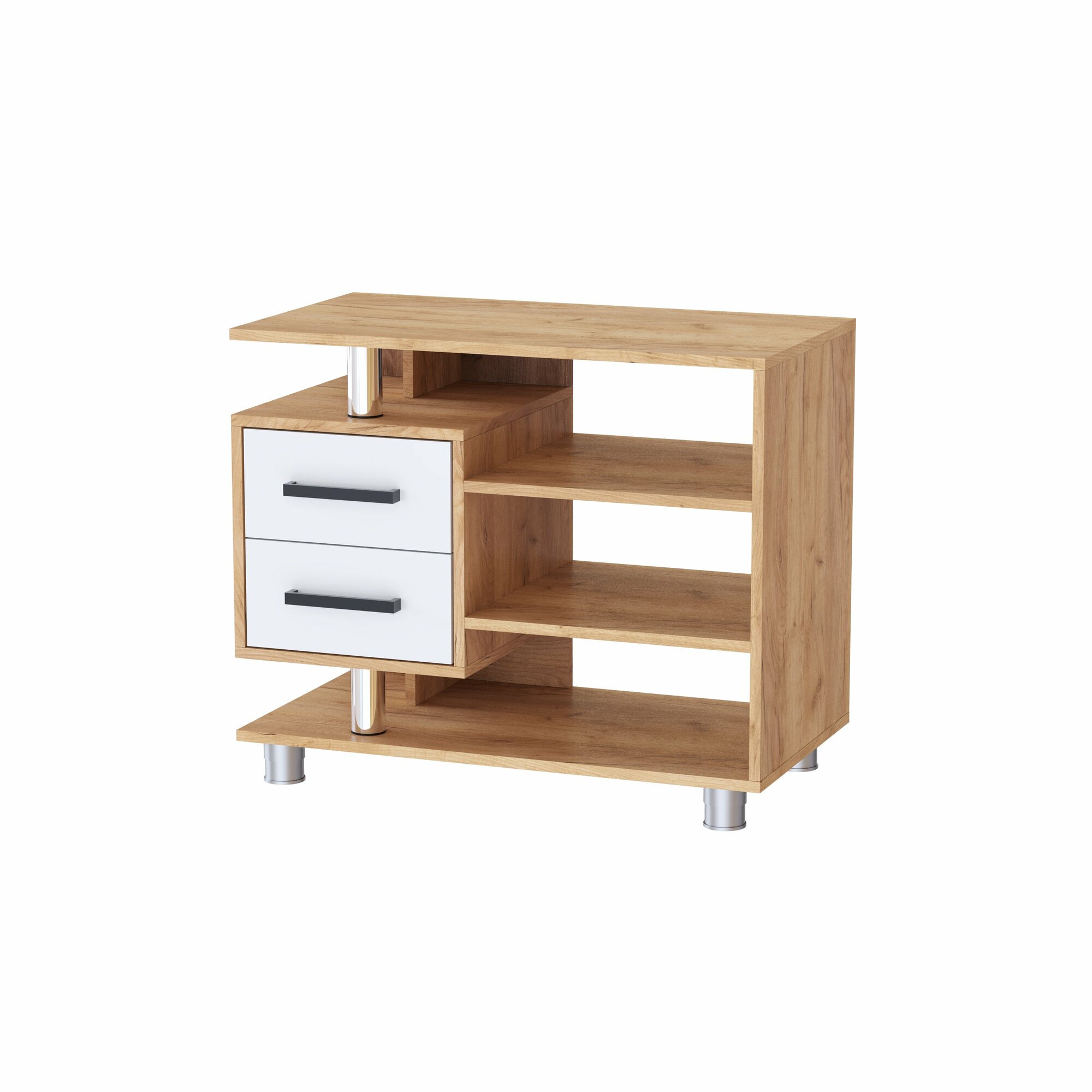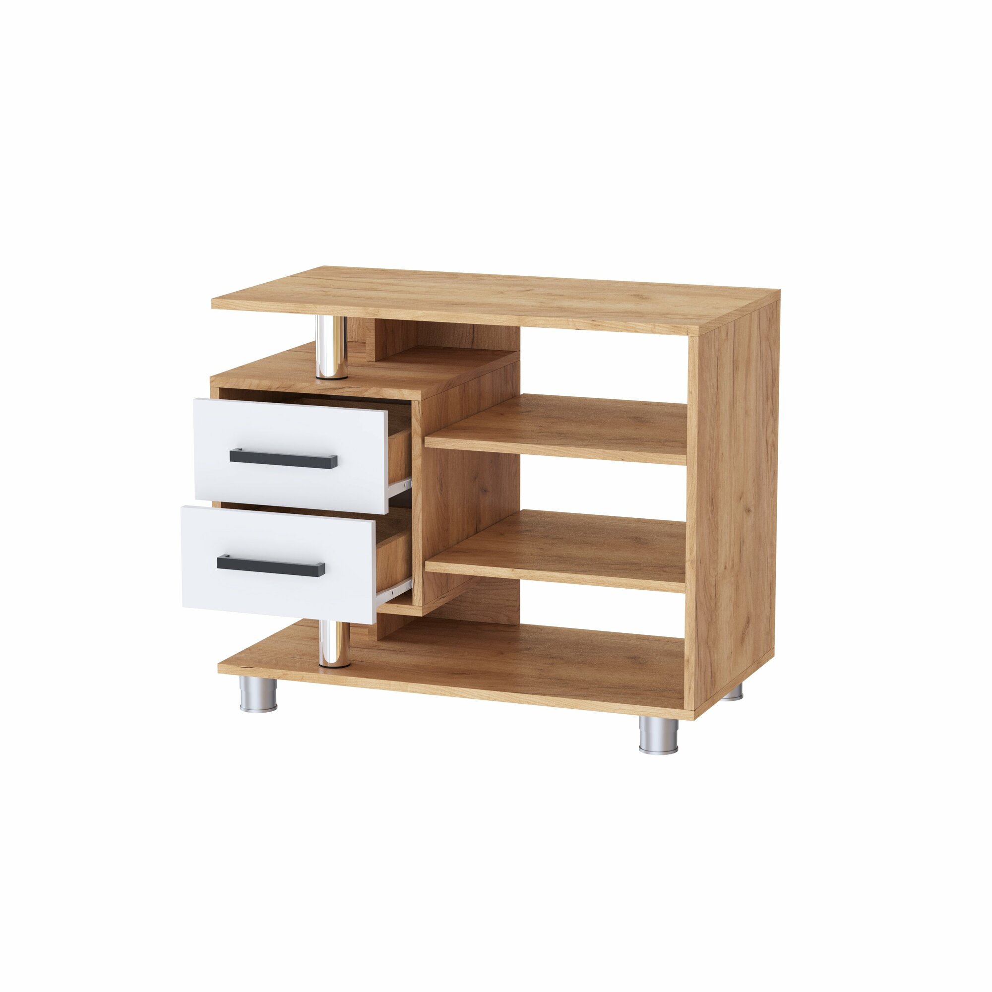 Купить Тумба под телевизор с двумя ящиками и открытыми полками ЛДСП