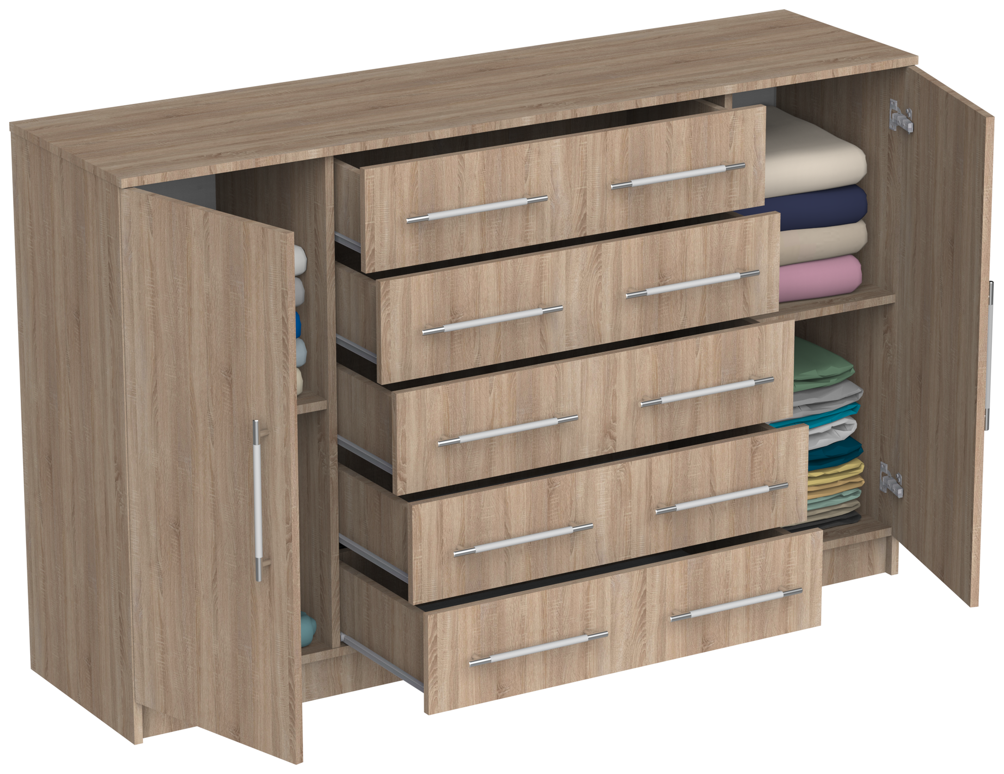 СохранитьКомод Капри-9 с 5 ящиками и 2 дверцами, ШхГхВ: 161х43х101 см, дуб сонома интересное:
