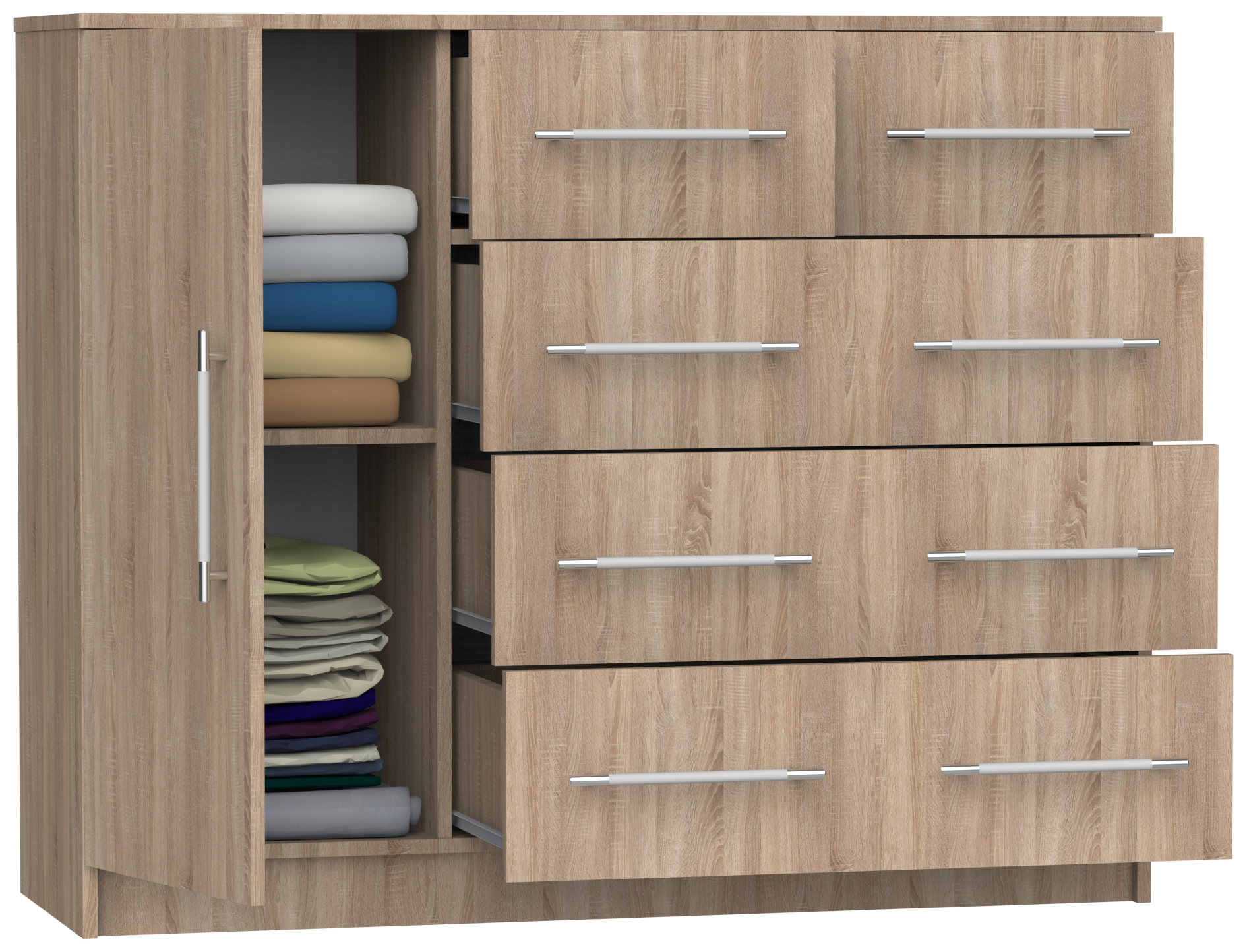 Комод Капри-8 с 5 ящиками и дверью, ШхГхВ: 121х43х101 см, дуб сонома