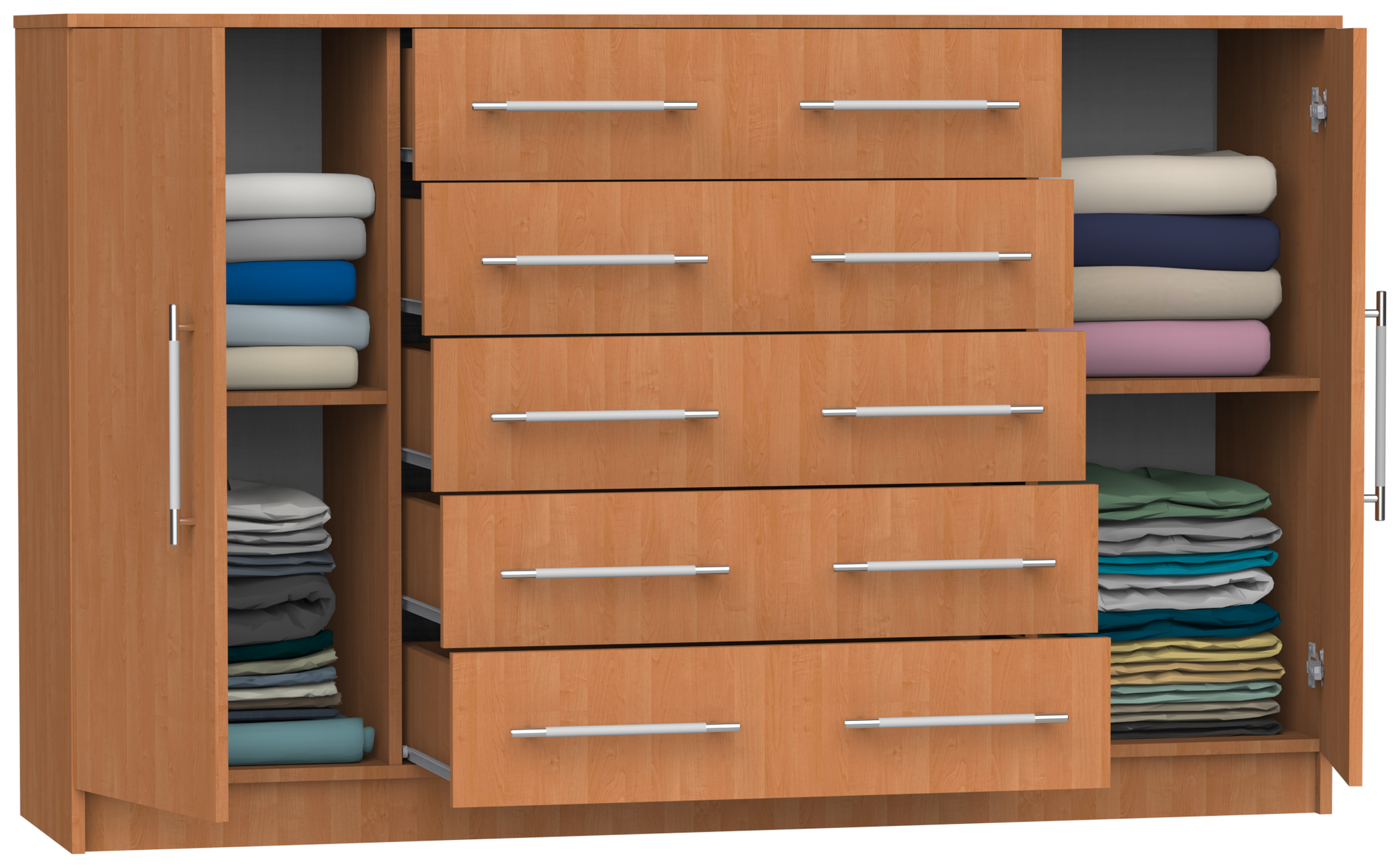 Купить Комод Капри-9 с 5 ящиками и 2 дверцами, ШхГхВ: 161х43х101 см, ольха