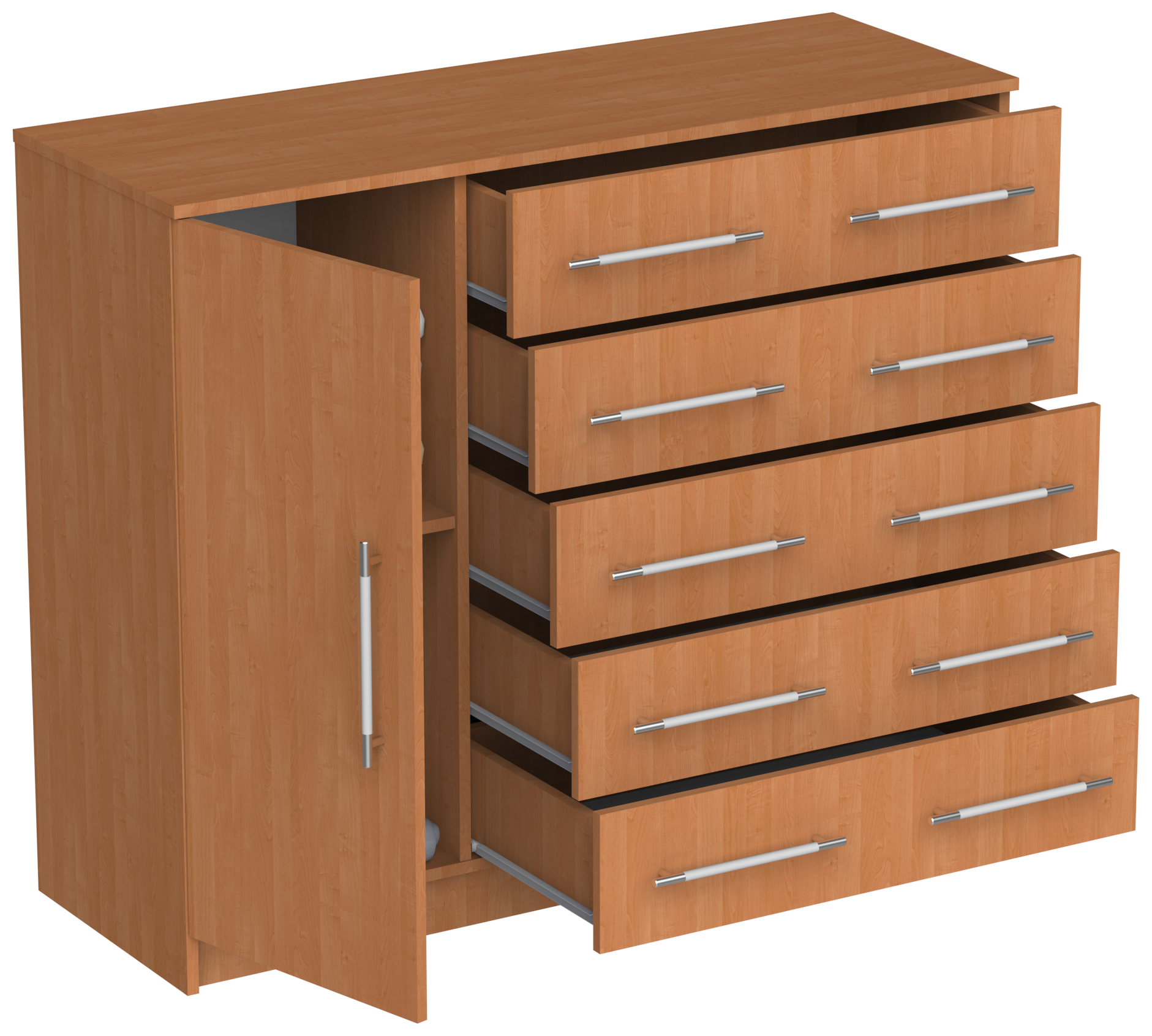 СохранитьКомод Капри-8 с 5 ящиками и дверью, ШхГхВ: 121х43х101 см, ольха интересное: