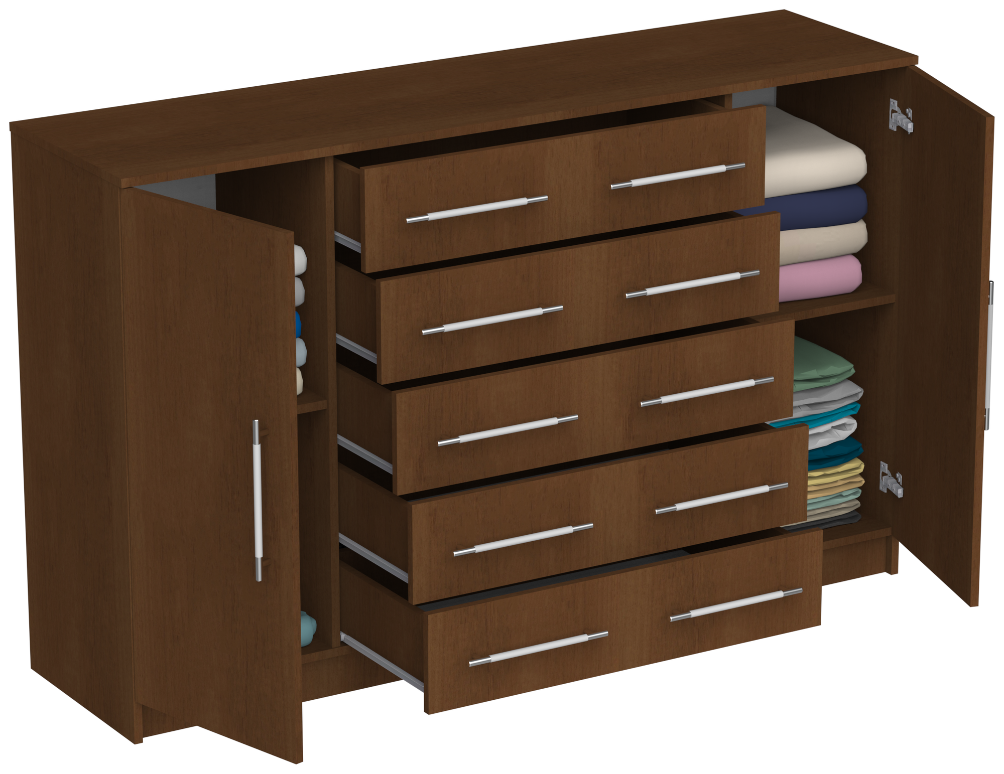 СохранитьКомод Капри-9 с 5 ящиками и 2 дверцами, ШхГхВ: 161х43х101 см, орех экко интересное: