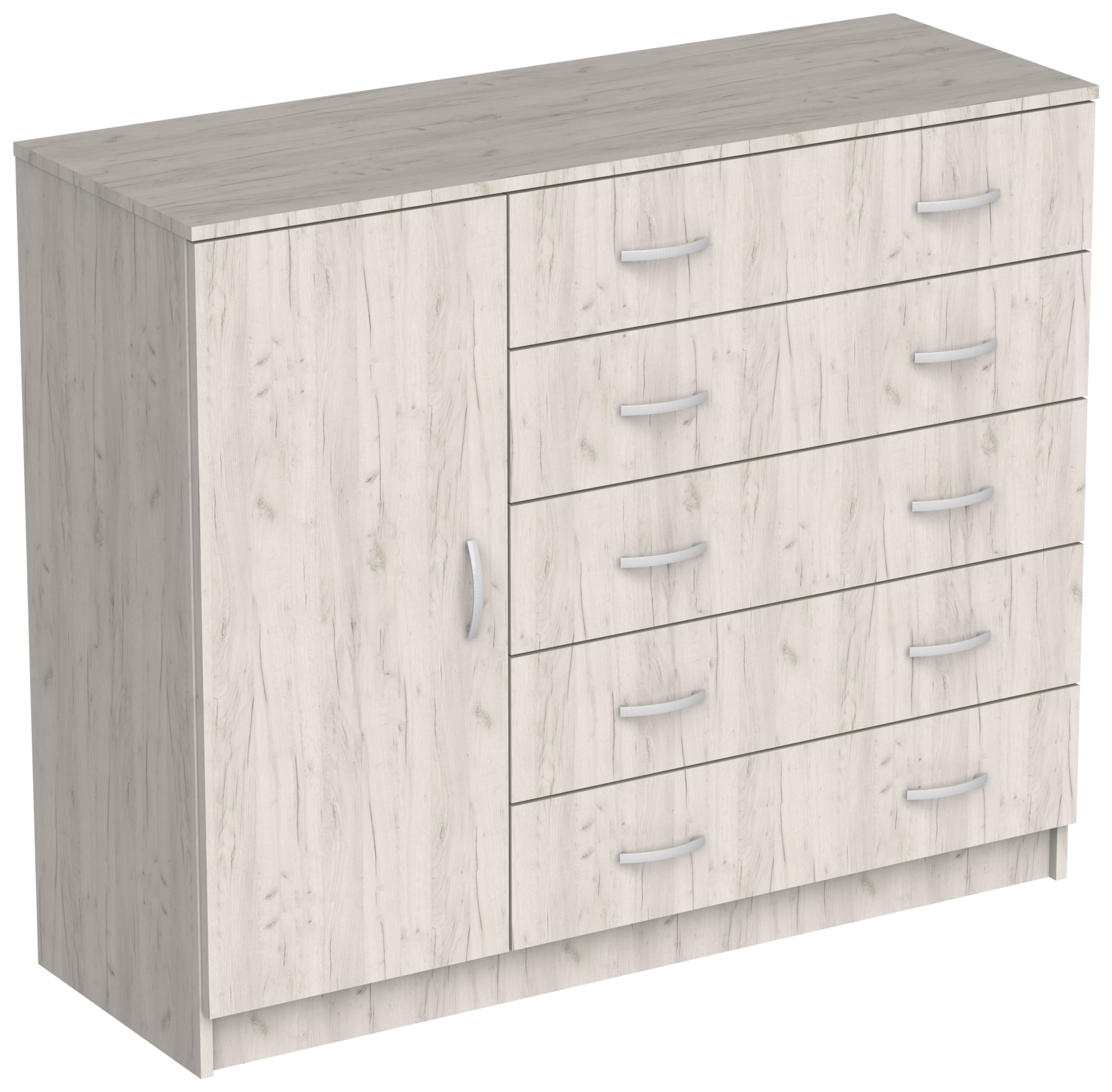Купить Комод Капри-8 с 5 ящиками и дверью, ШхГхВ: 121х43х101 см, дуб крафт белый