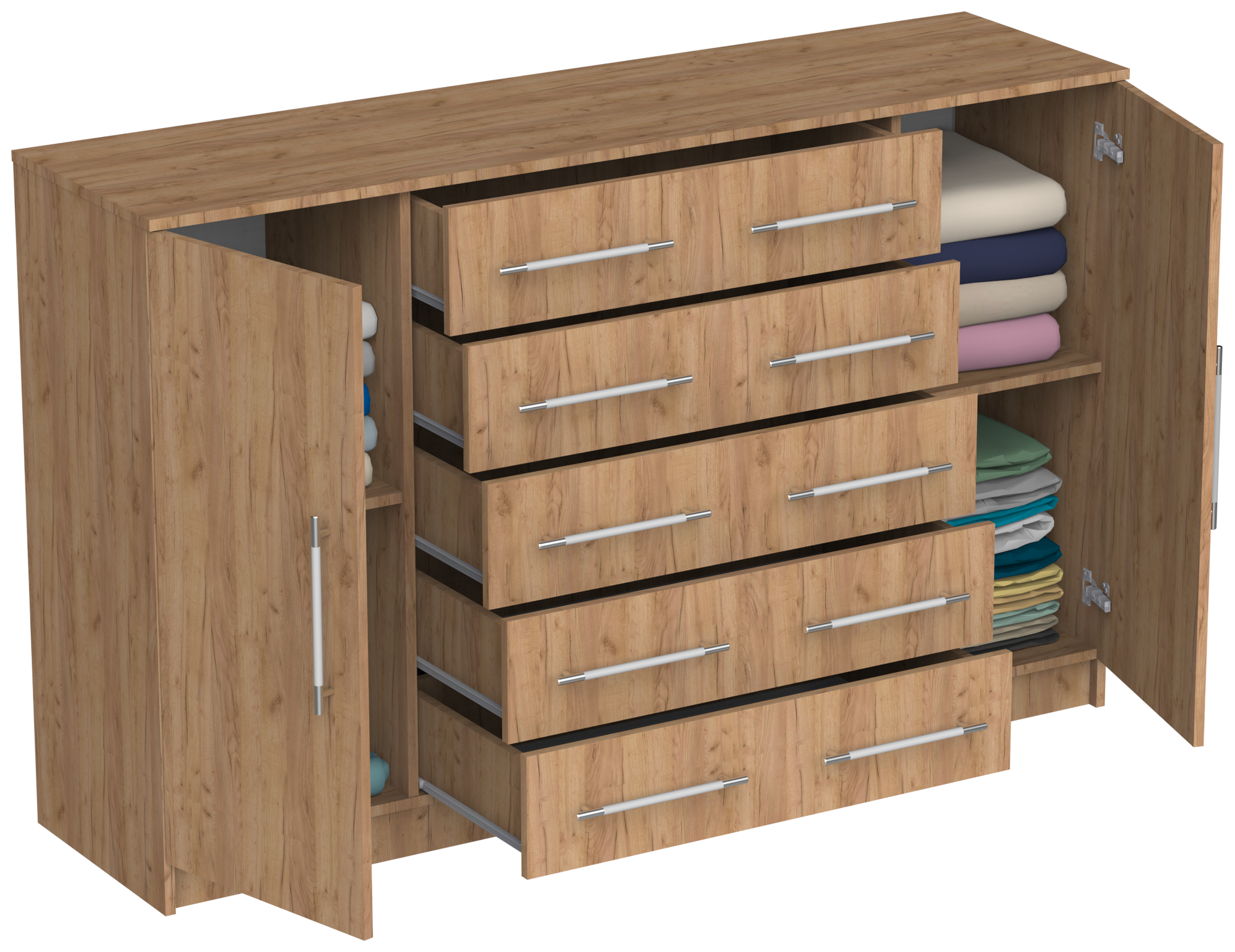 СохранитьКомод Капри-9 с 5 ящиками и 2 дверцами, ШхГхВ: 161х43х101 см, дуб крафт золотой интересное: