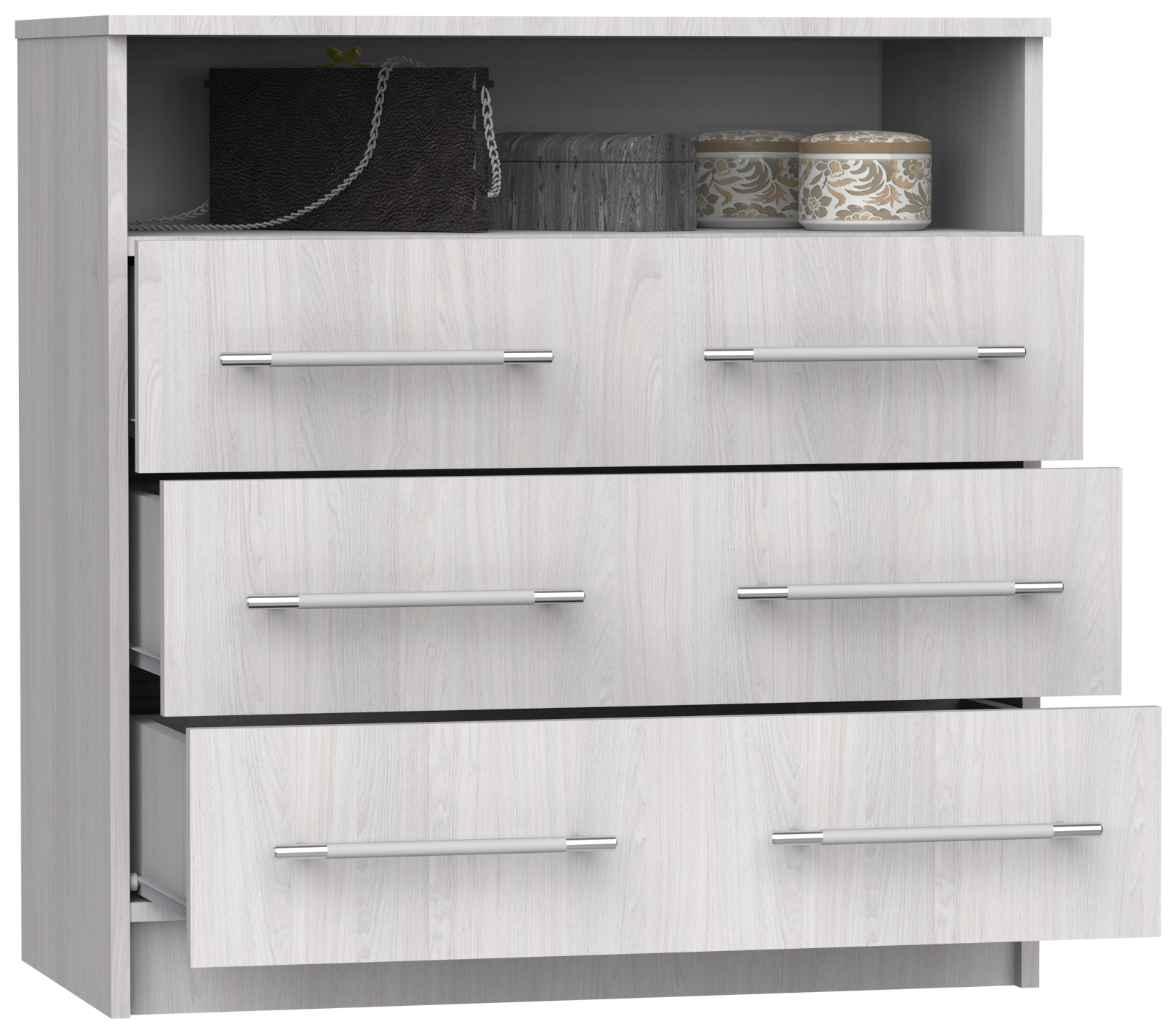 Купить Комод Капри-7 с 3 ящиками и полкой, ШхГхВ: 81х43х83 см, ясень анкор светлый