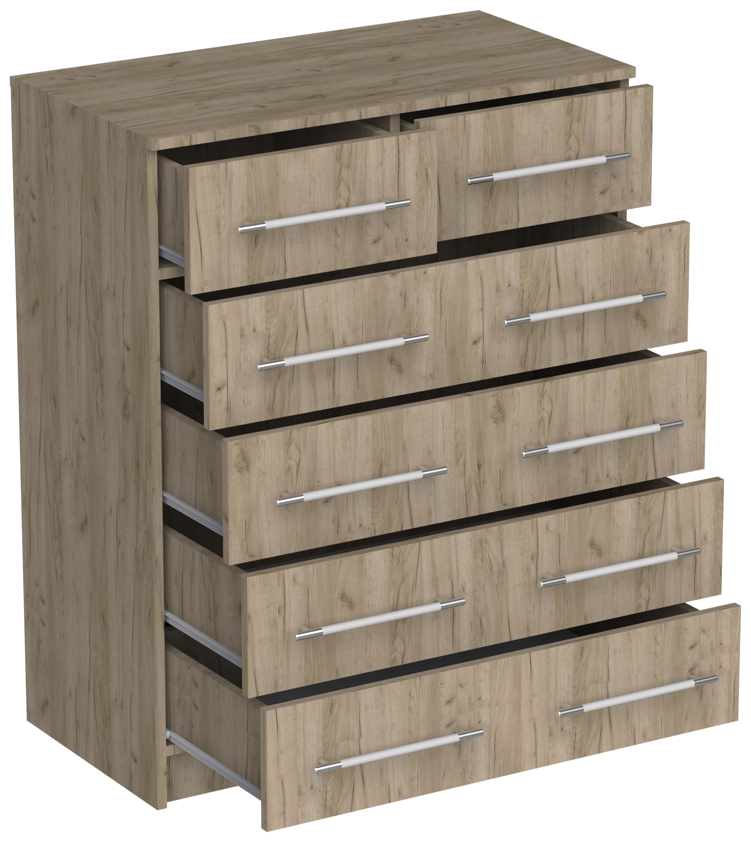 Комод Капри-5 с 4 ящиками и 8 ручками, ШхГхВ: 81х43х83 см, дуб сонома